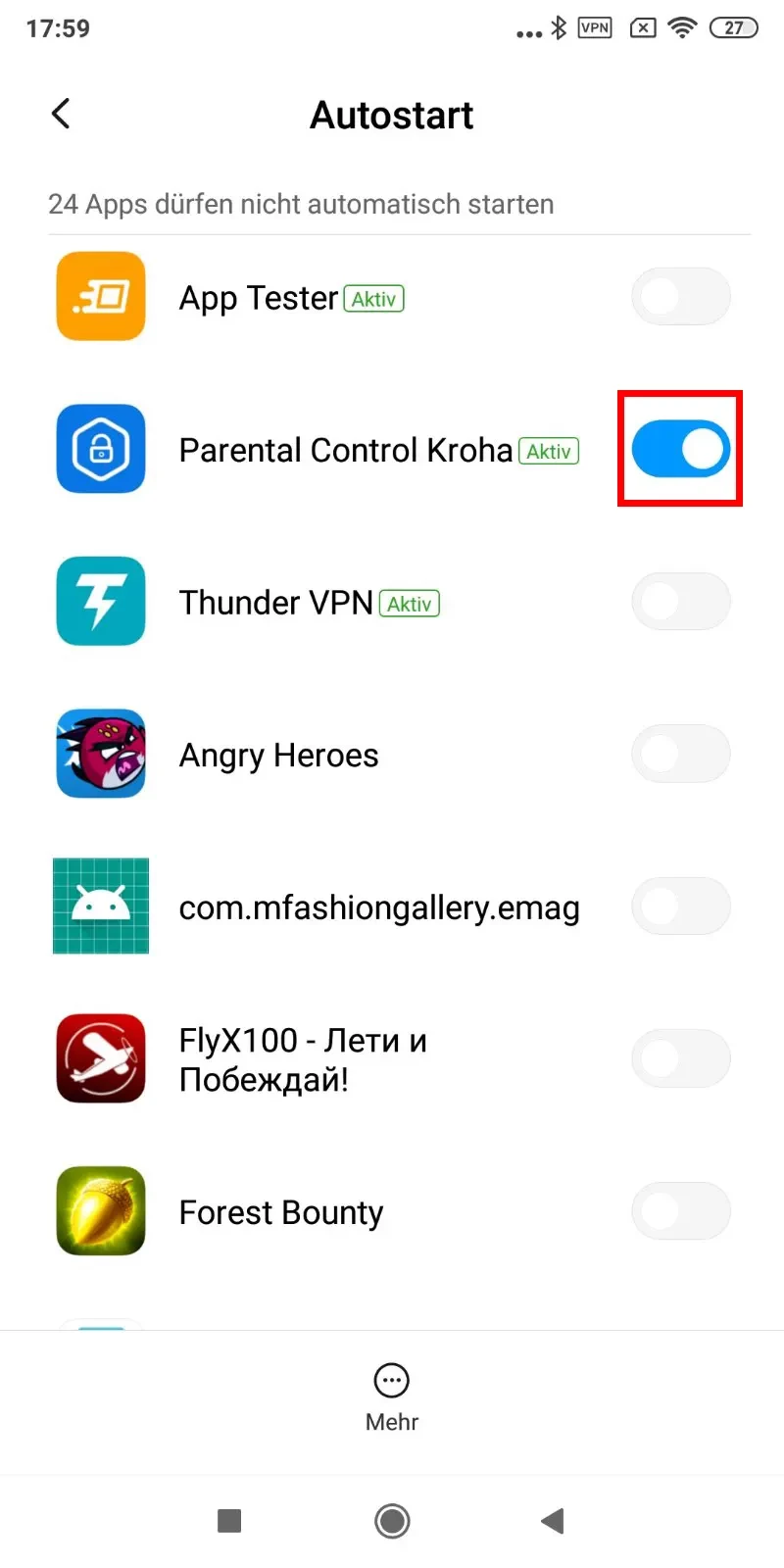 Beachten Sie: Manchmal sind die Optionen „Autostart“ und „Hintergrundbetrieb“ vom Hersteller automatisch aktiviert. Wenn die Funktionen aktiviert sind, müssen die Einstellungen nicht geändert werden.