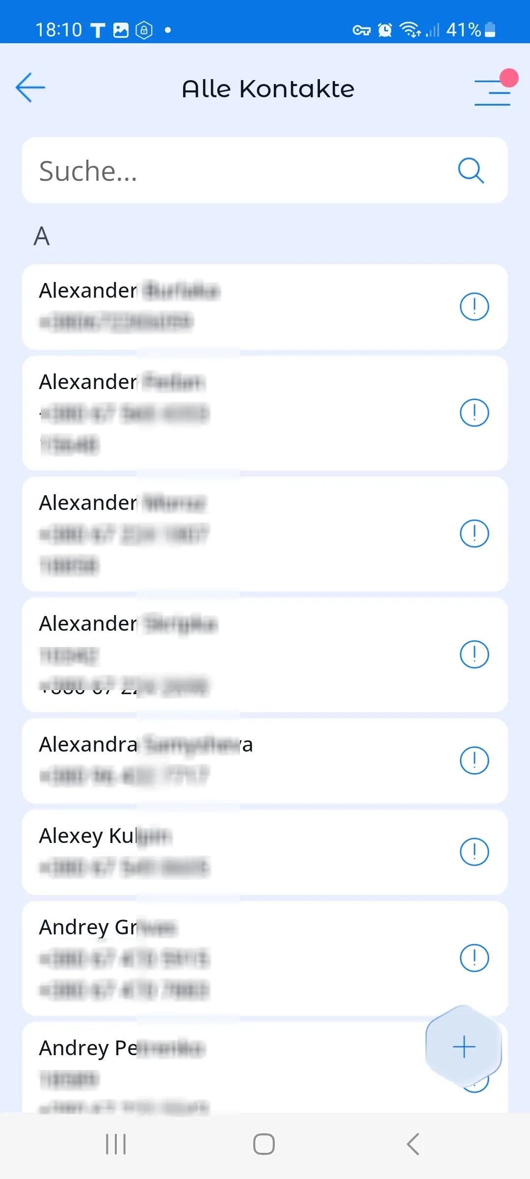 Um einen Kontakt hinzuzufügen, klicken Sie auf die Schaltfläche „+“ unten auf dem Bildschirm.