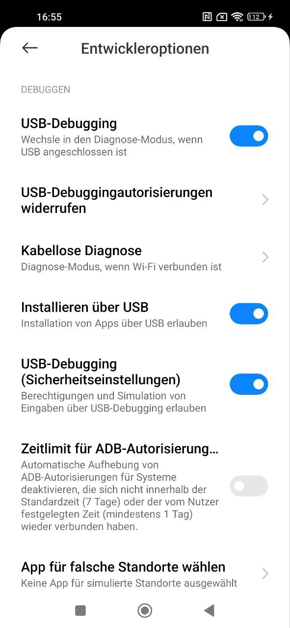 2. Schalten Sie auf dem Kind-Gerät im Entwicklerbereich den Schalter für „USB-Debugging“ aus und wieder ein.
