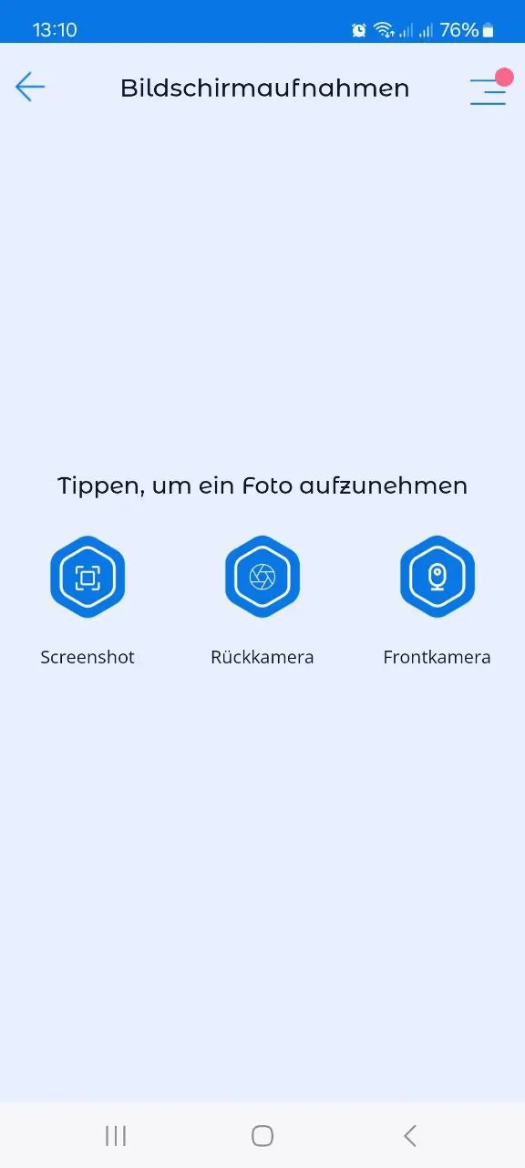 Im Abschnitt „Screenshots“ haben Eltern die Möglichkeit, einen Screenshot vom Kindergerät zu machen oder Fotos mit der Vorder- oder Rückkamera aufzunehmen.
