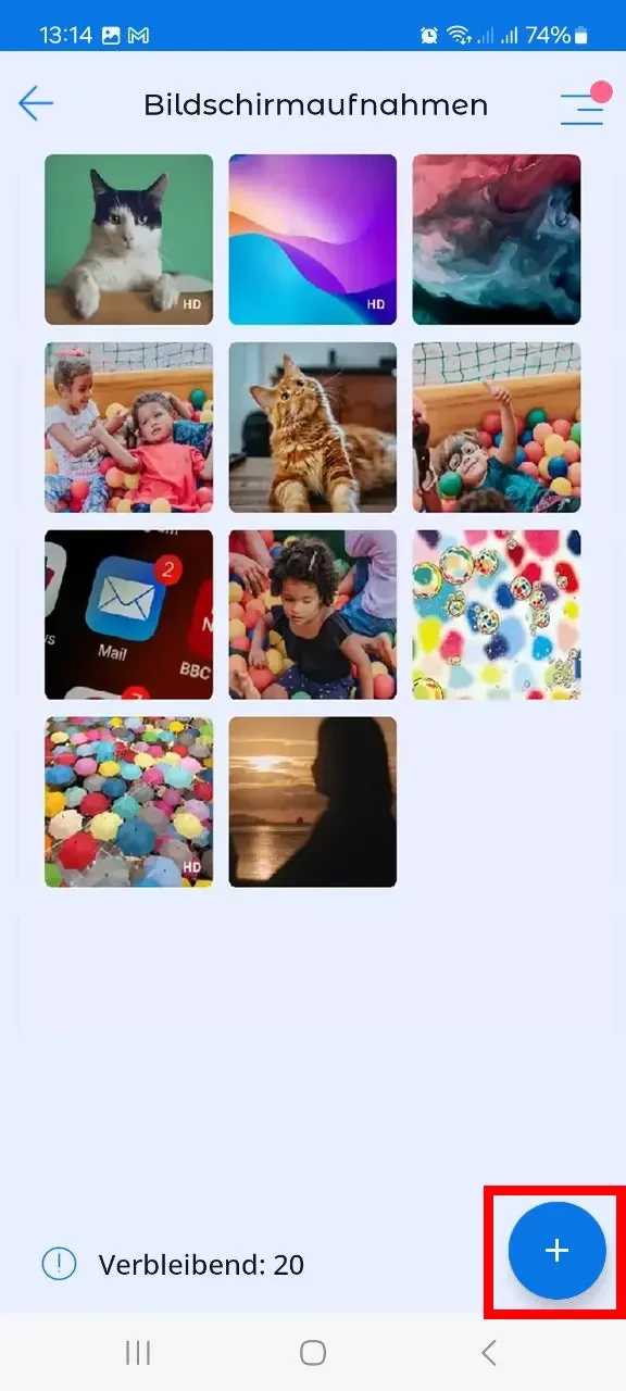 Nachdem der Screenshot empfangen wurde, erscheint er in der Liste der Screenshots. Um erneut einen Screenshot vom Kinderbildschirm zu machen, klicken Sie auf „+“ in der unteren rechten Ecke.