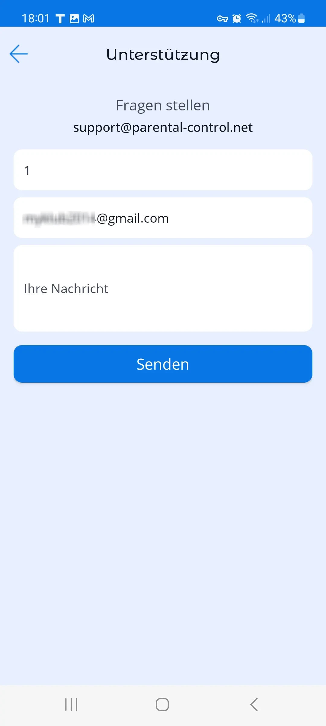 5. Support In diesem Menü können Sie schnelle Hilfe bei Fragen zur Nutzung der App erhalten. Die Antwort wird an die E-Mail-Adresse gesendet, die Sie bei der Registrierung angegeben haben.