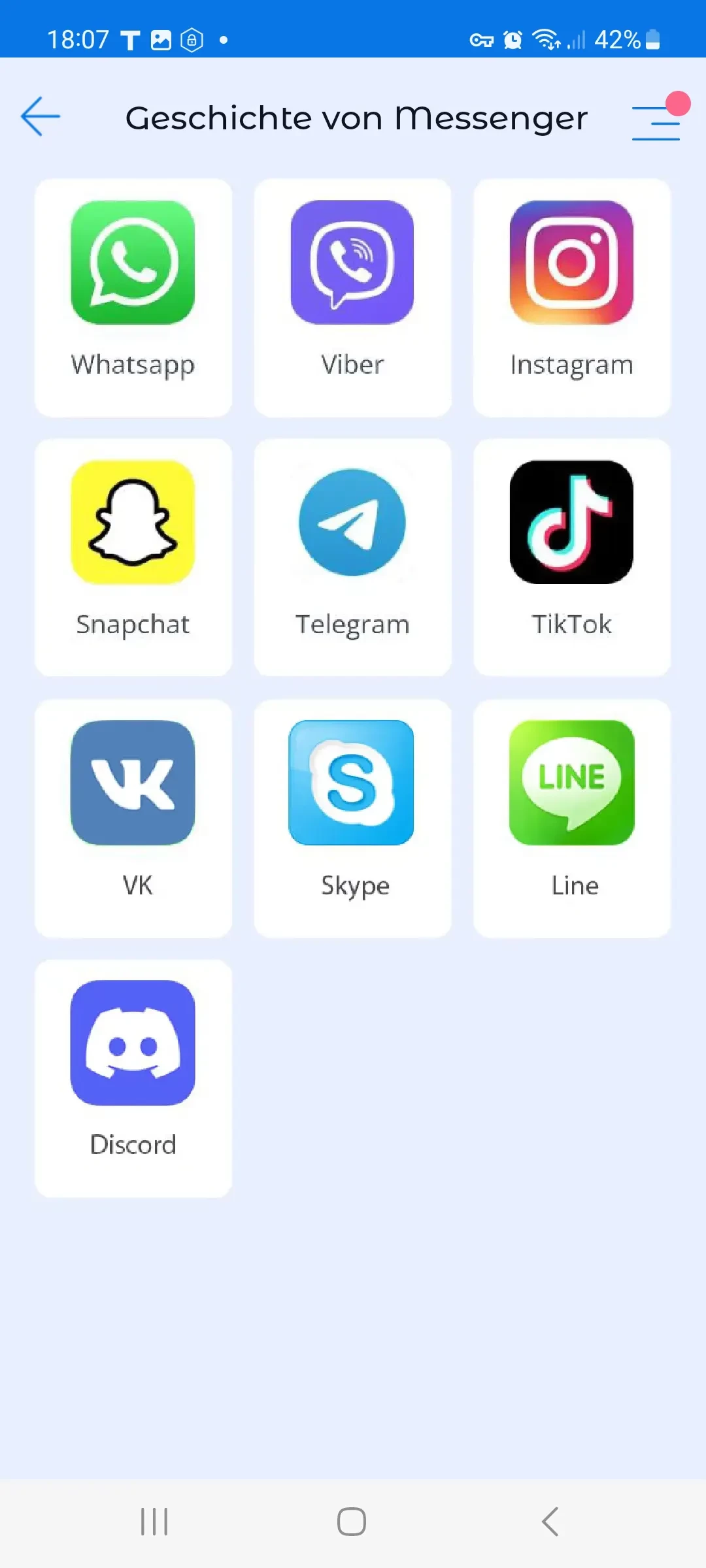 Auf dem Bildschirm werden nur die Messenger angezeigt, die auf dem Smartphone des Kindes installiert sind.