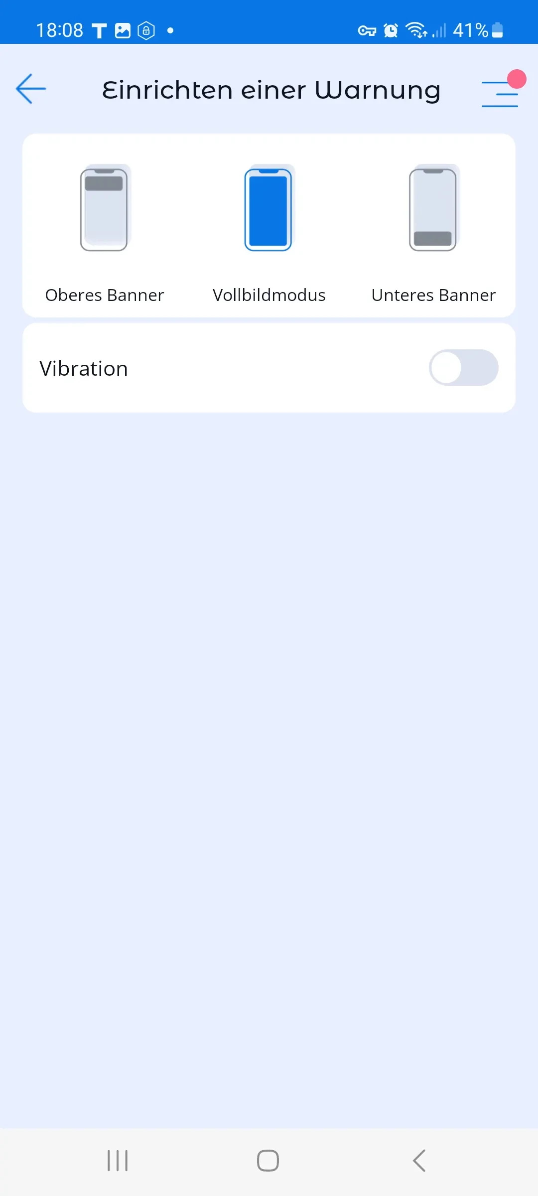- Die Warnung kann als Banner oben oder unten auf dem Bildschirm angezeigt werden.