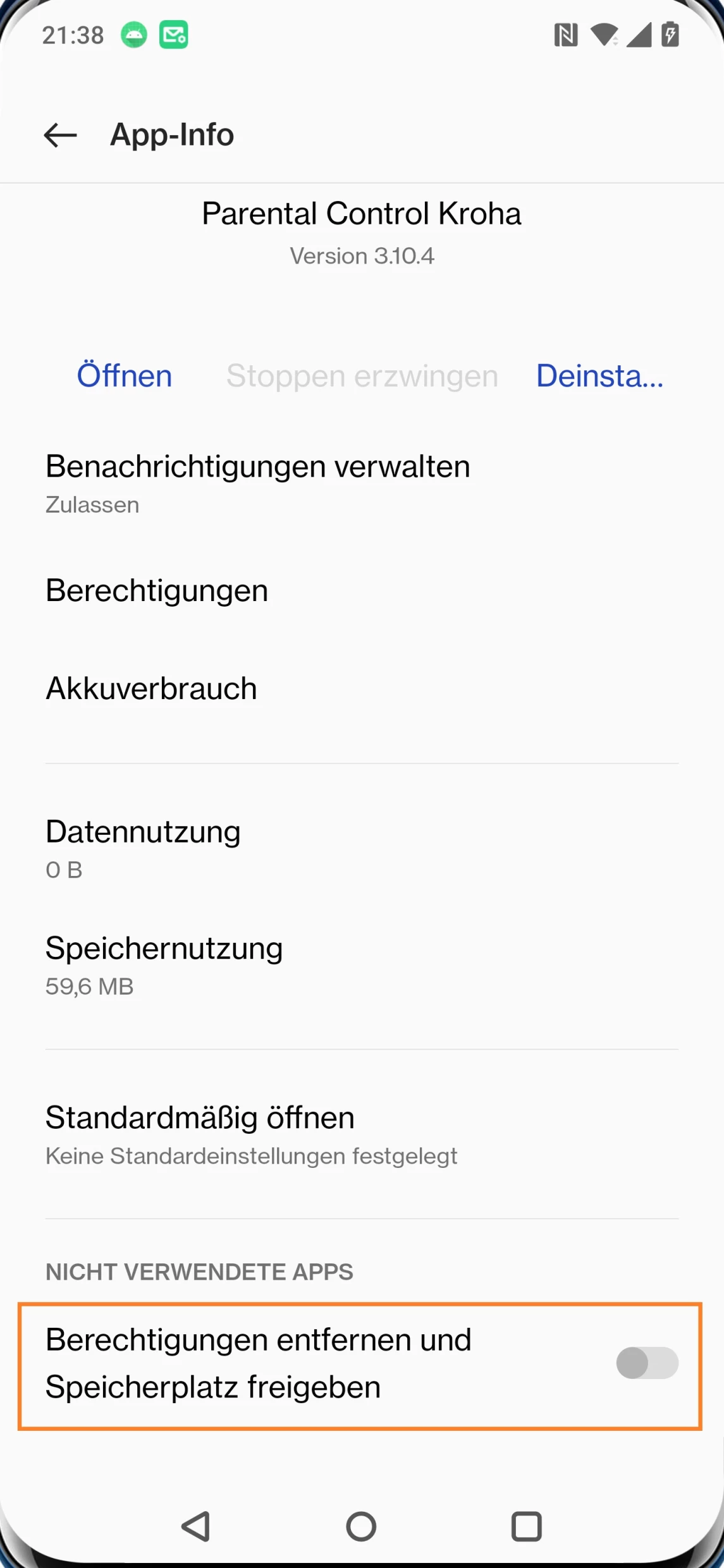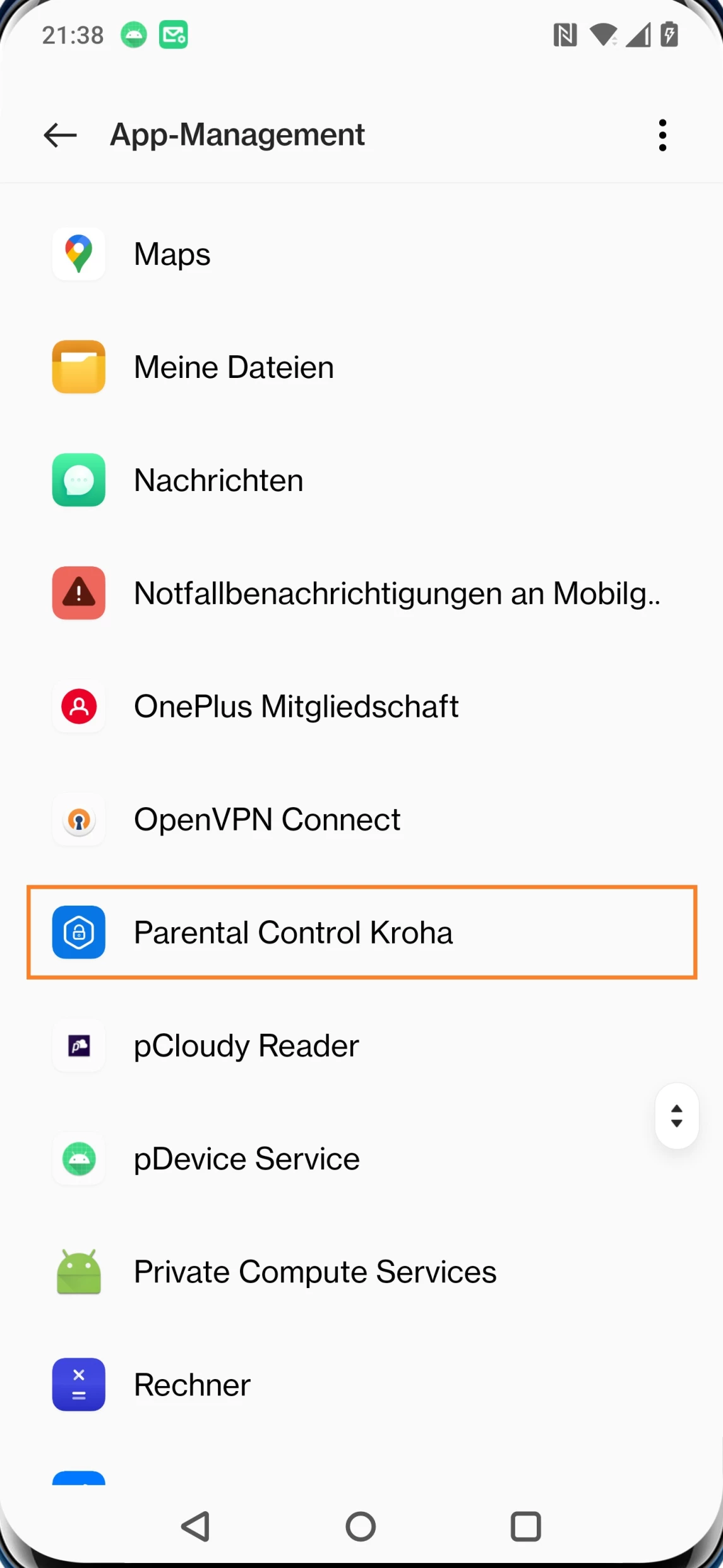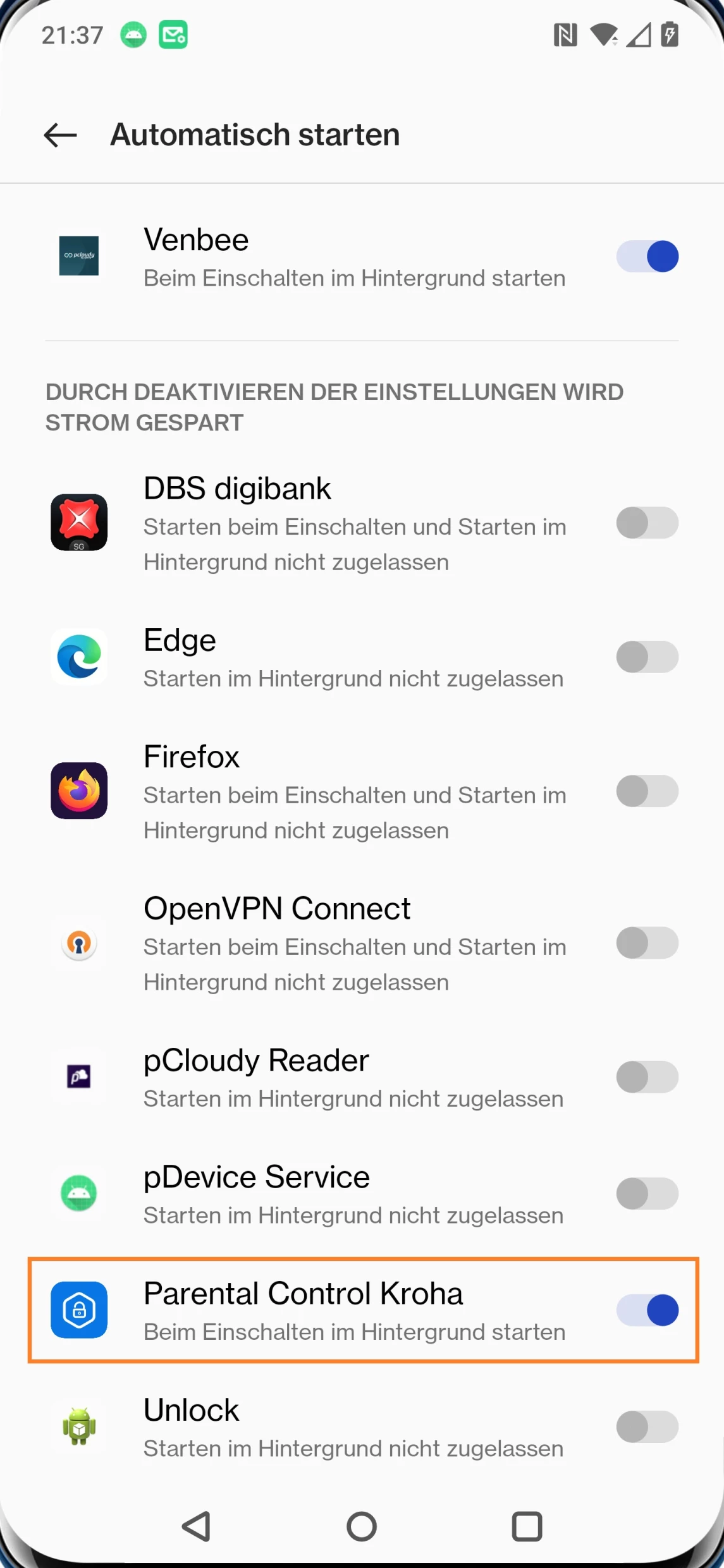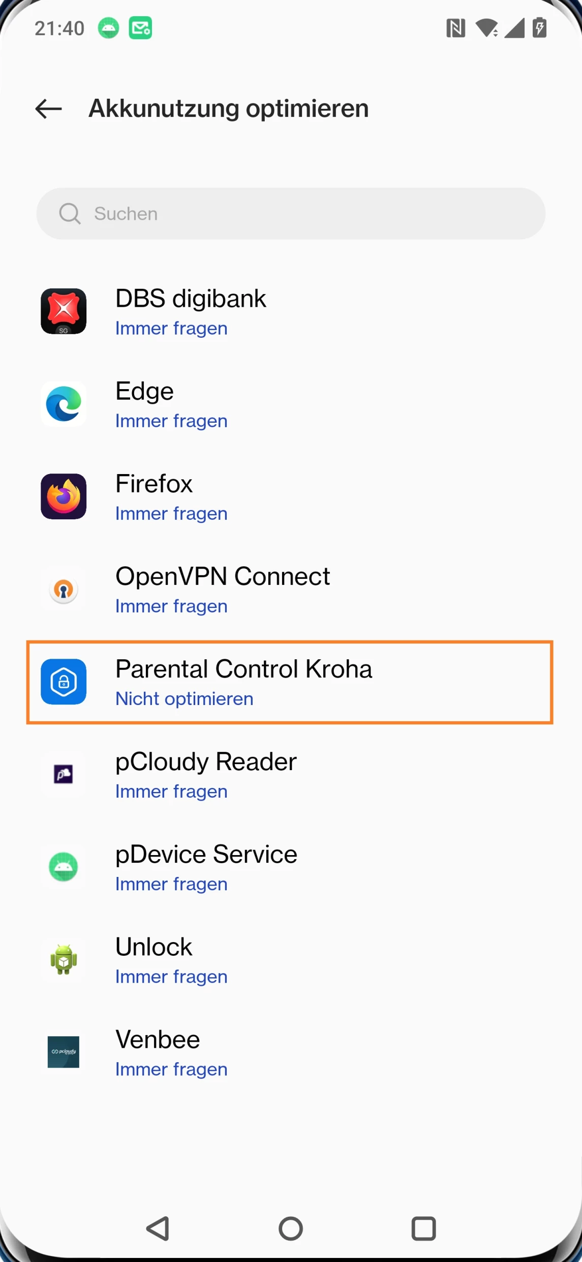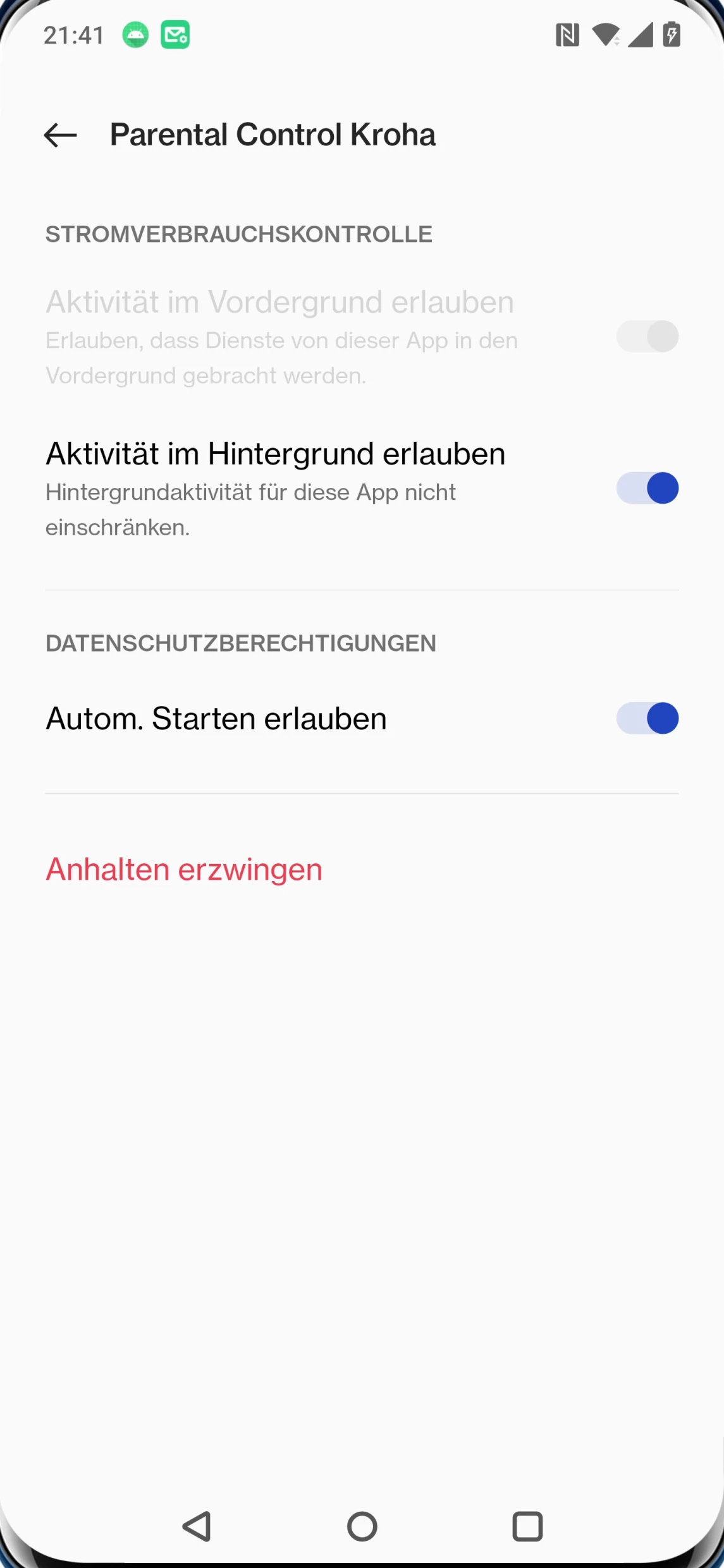 Wie man Parental Control Kroha im Hintergrund auf OnePlus aktiv hält?