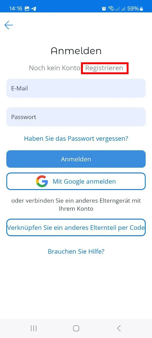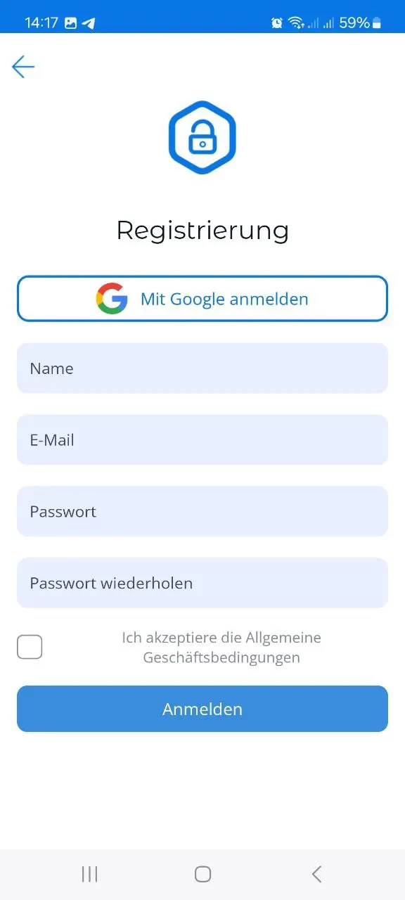 Nachdem die App installiert wurde, müssen Sie sich kurz registrieren.
