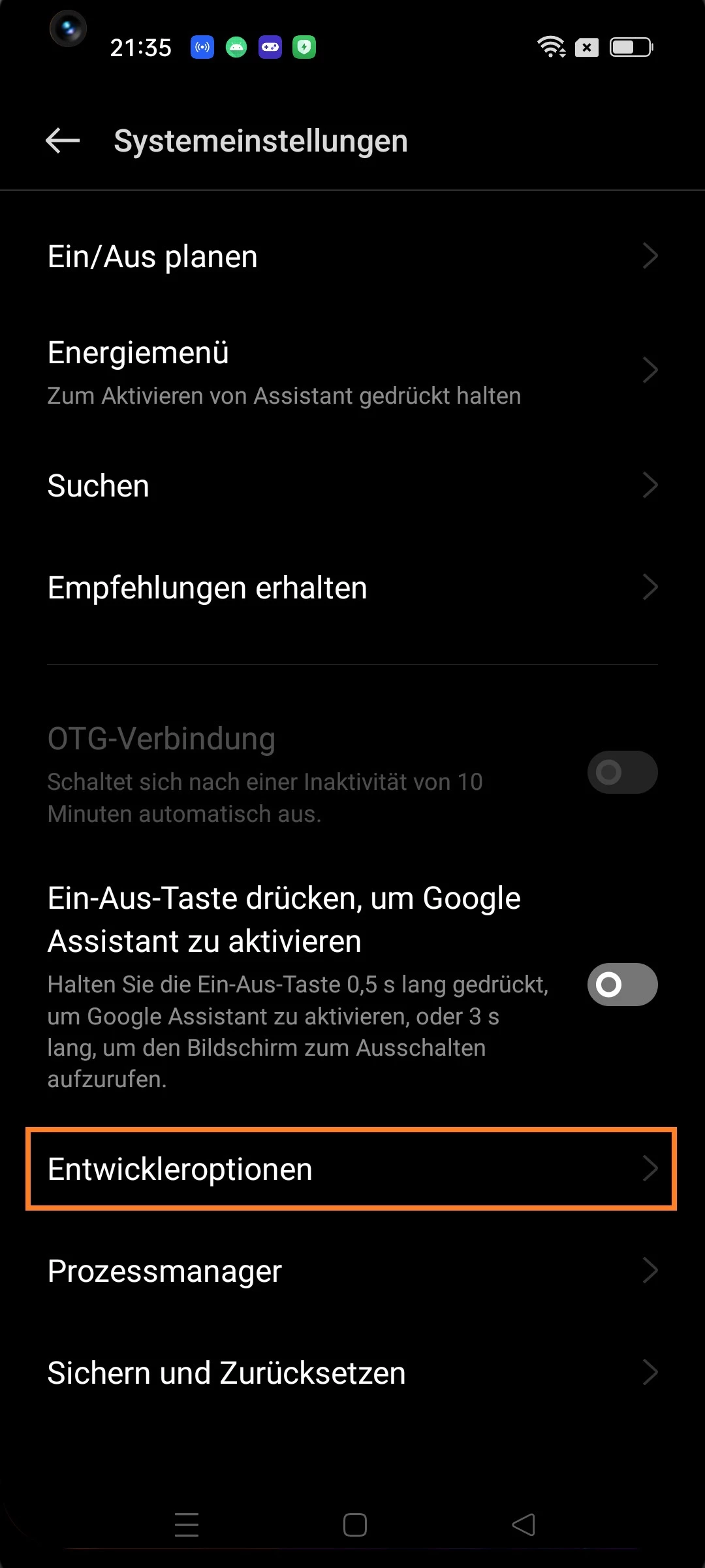 Um dann auf die Entwickleroptionen zuzugreifen: