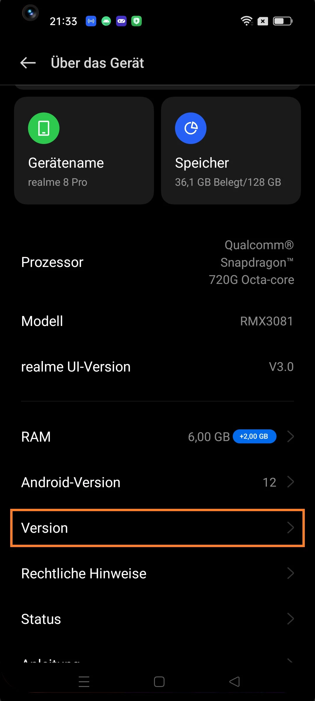 - Gehen Sie zum Abschnitt „Version“.