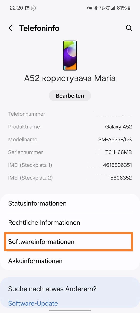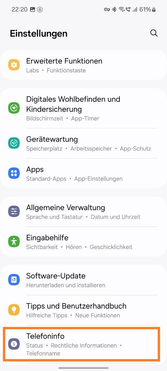 - Gehen Sie zum Abschnitt „Telefoninfo“.