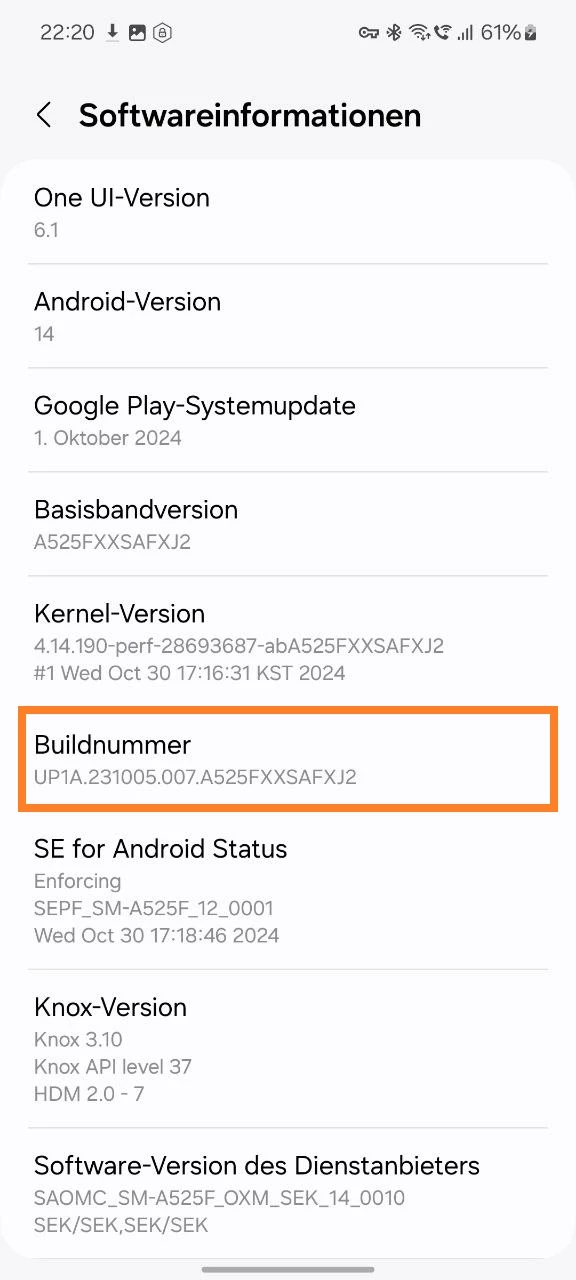 - Finden Sie den Punkt „Build-Nummer“ und tippen Sie 5-8 Mal darauf.