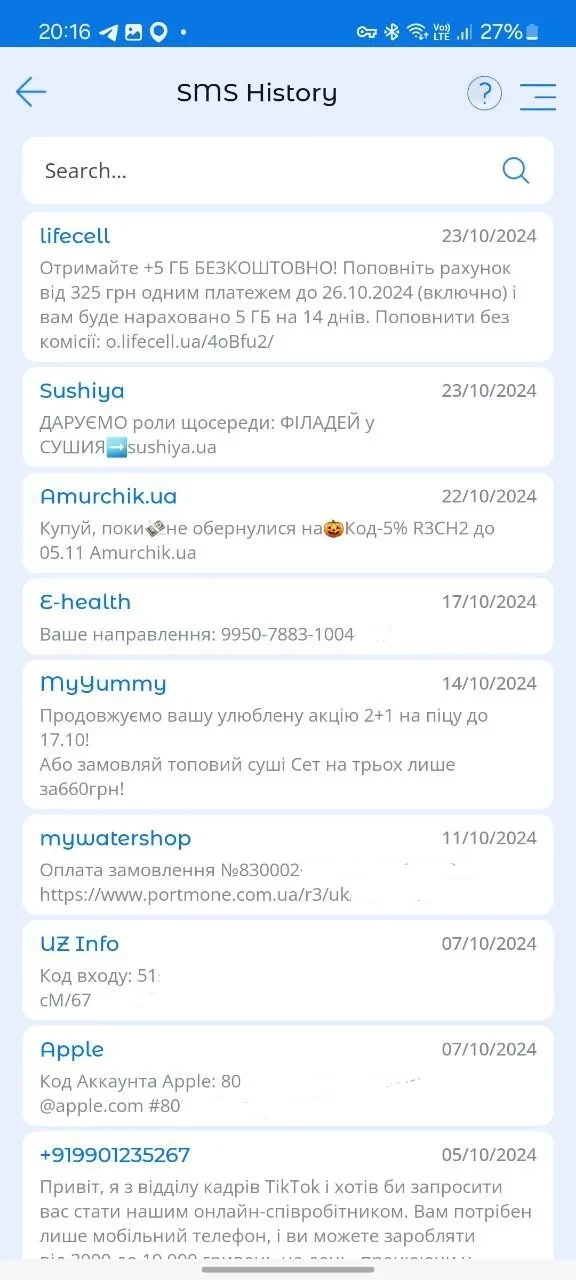 Call History and SMS History (Android)
