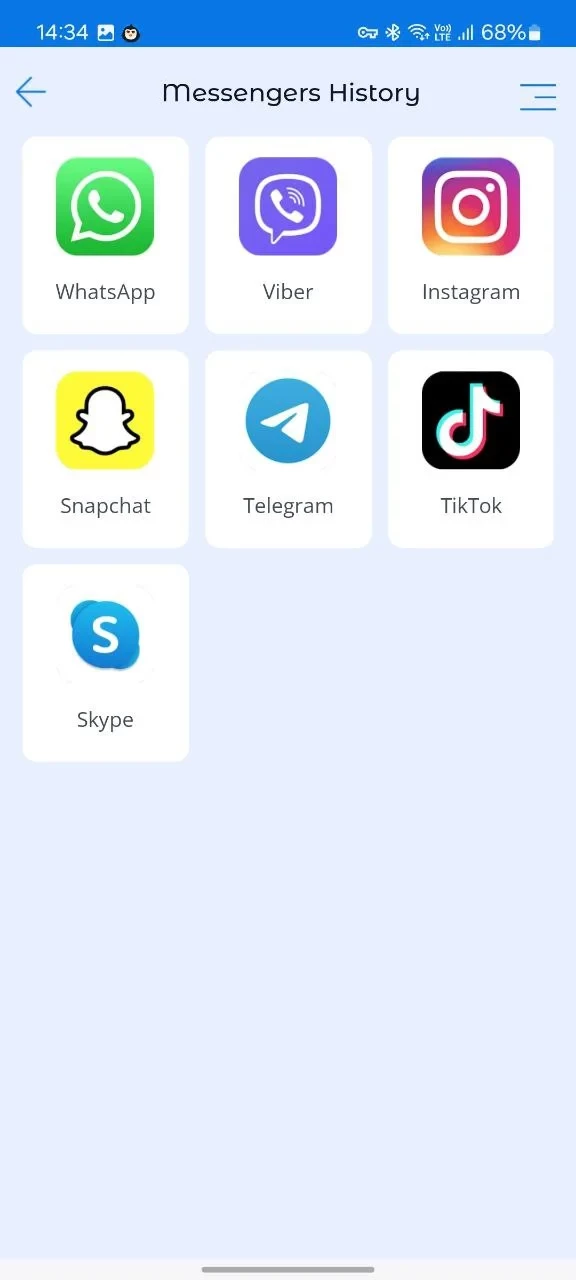 The function allows you to view the child's communications in 13 popular messengers (Telegram, Viber, Whatsapp, Tiktok, Instagram, Snapchat, Skype, Discord, Vk, Line, Signal, Tinder, Badoo).