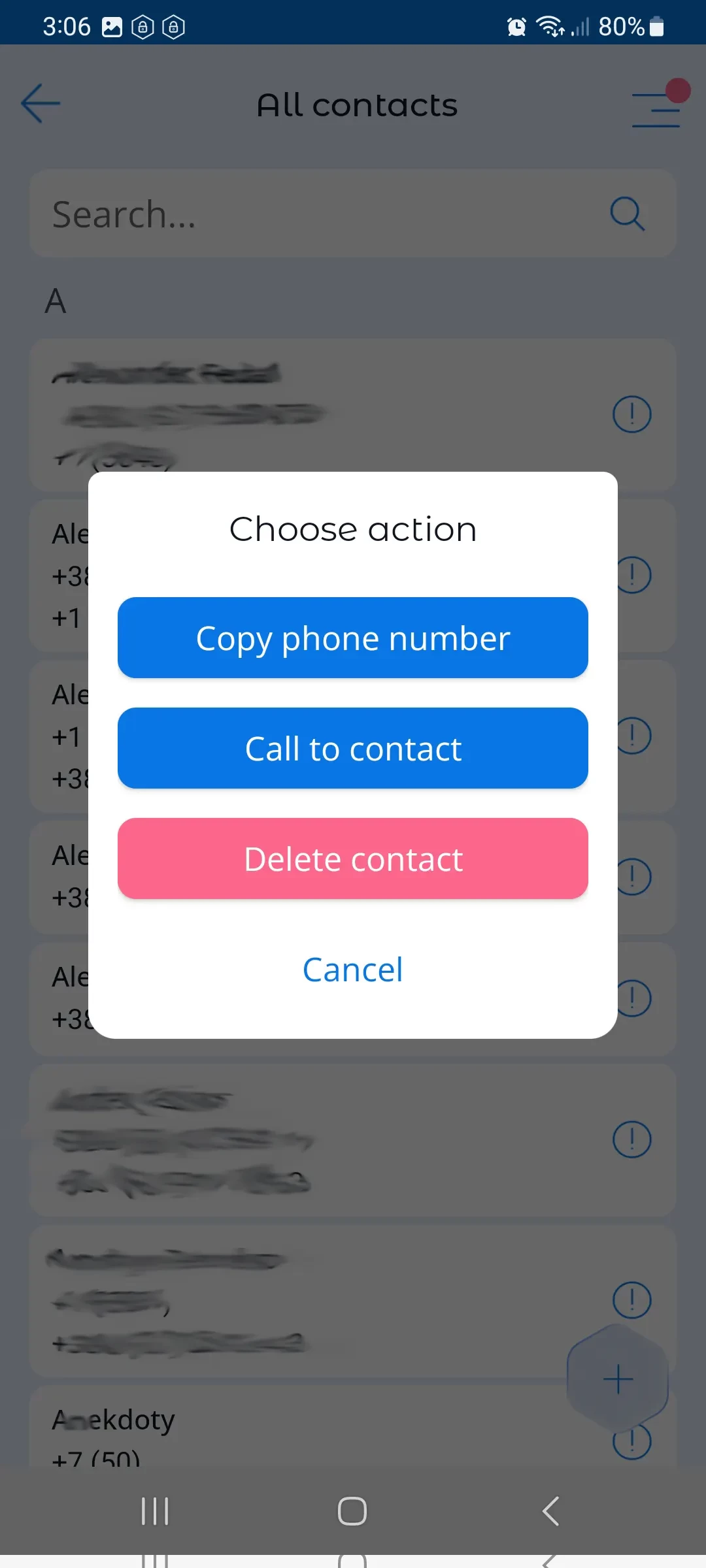 To delete or copy, tap the icon ‘!’ next to each contact.