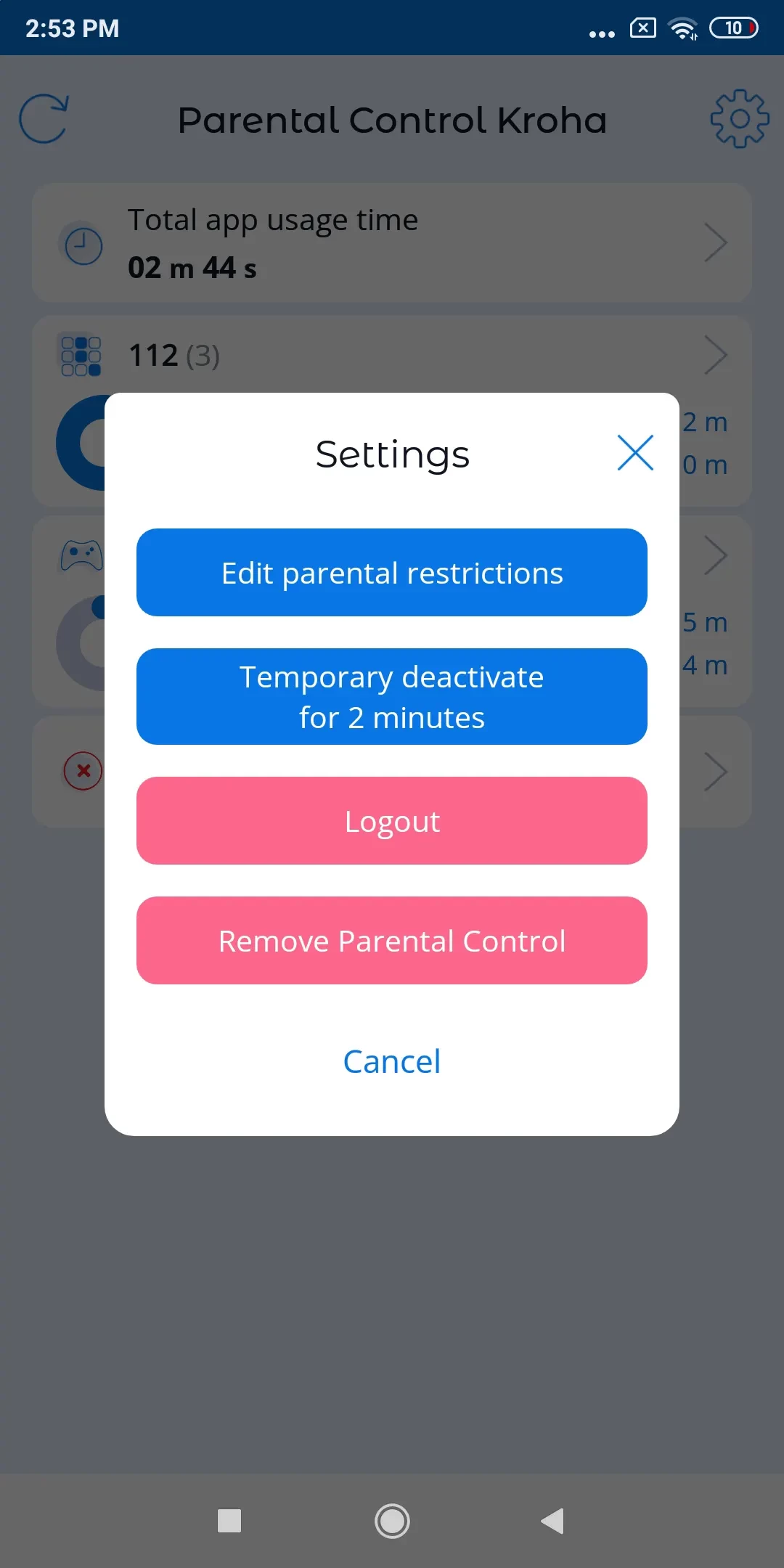 - Click the “Remove Parental Control Kroha” button