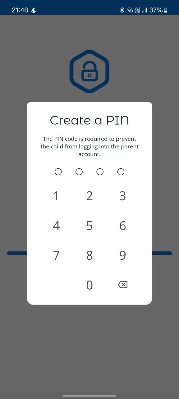 Next, the Parental Control Kroha app will open on the child's smartphone/tablet with a screen to create a PIN code. Create a PIN code.
