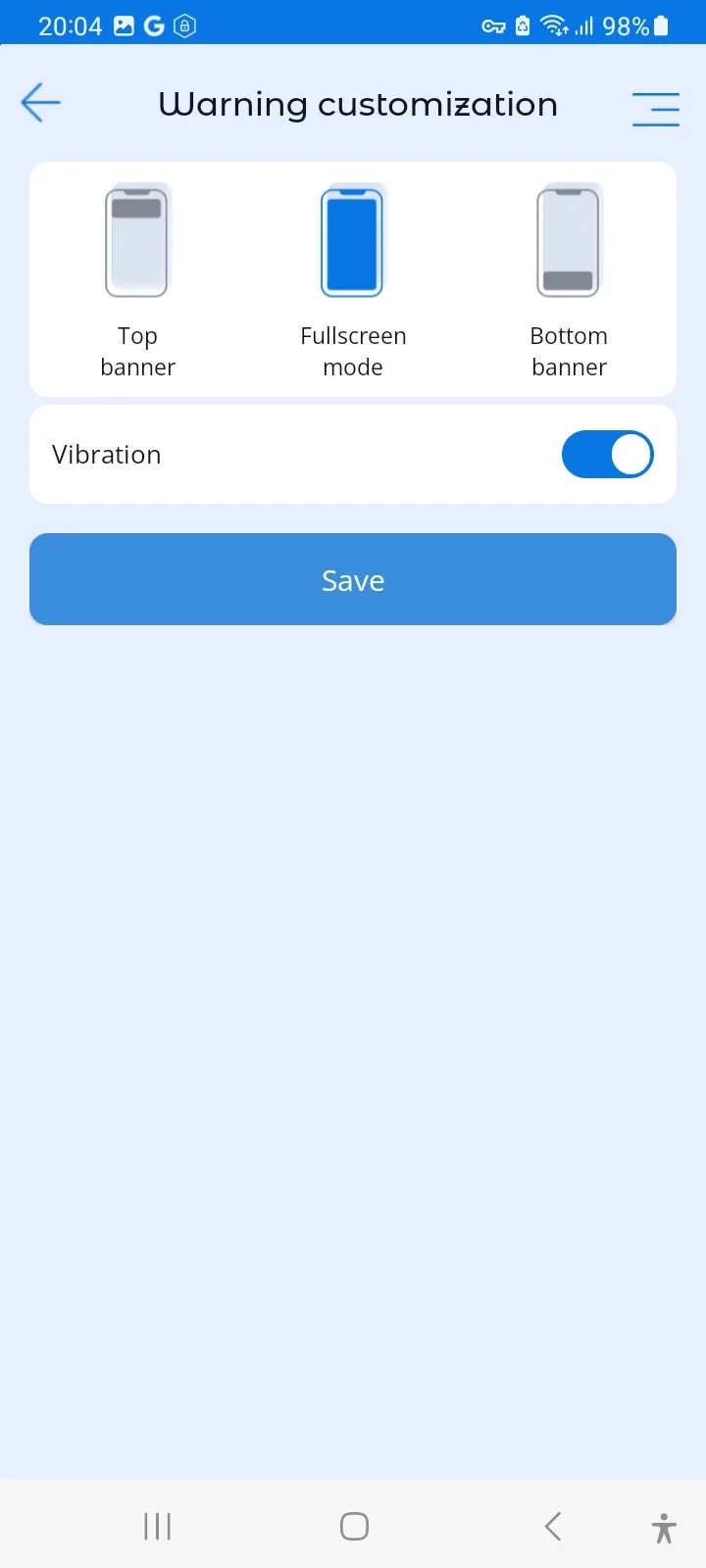 - Activate vibration when the distance from the screen to the eyes is too close
