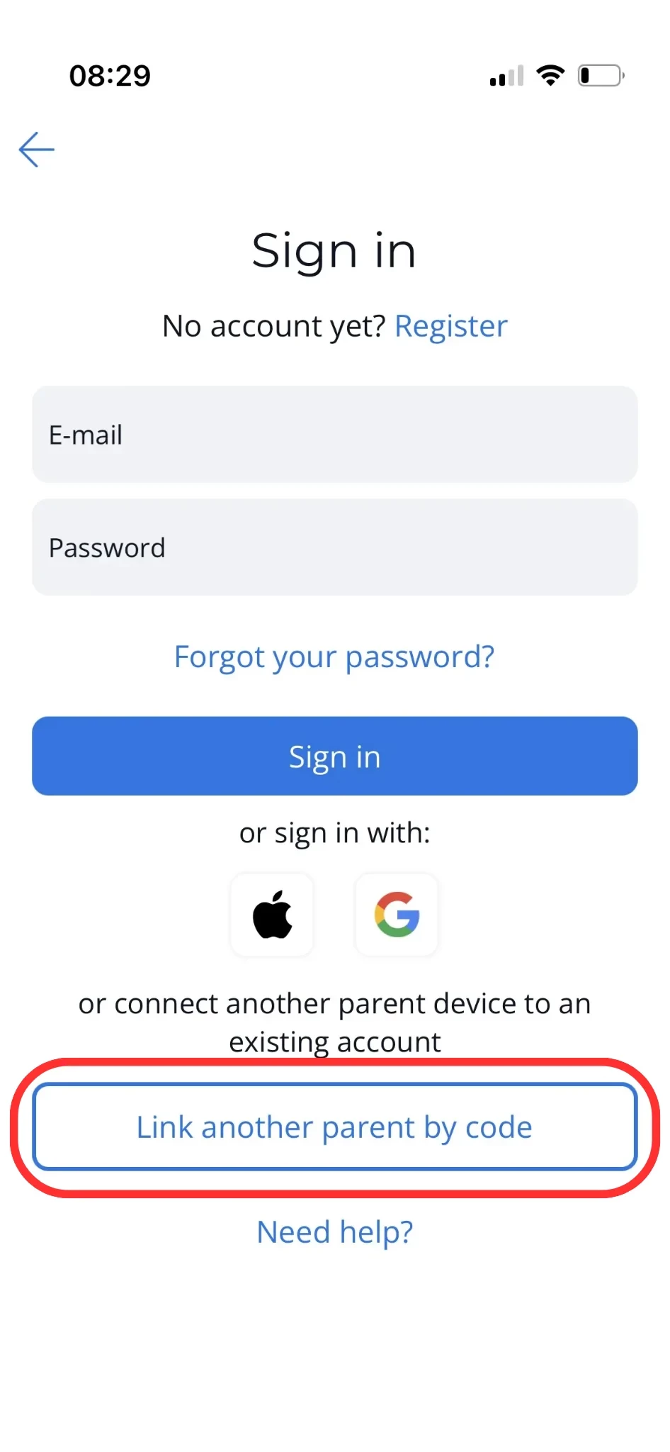 5. Open the app on the second parent's smartphone;