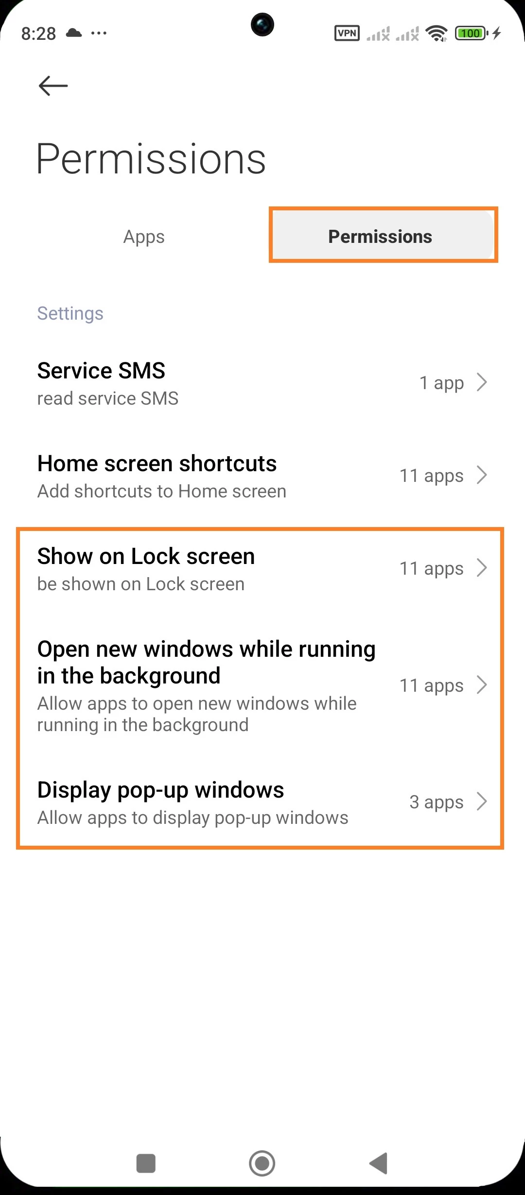 - Open the Settings app on your child's device > open the Apps section > Permissions > Other permissions > Permissions tab > go to the Lock screen, Show pop-ups when running in the background, Pop-ups permissions one by one and enable permissions for the Parental Control Kroha app.