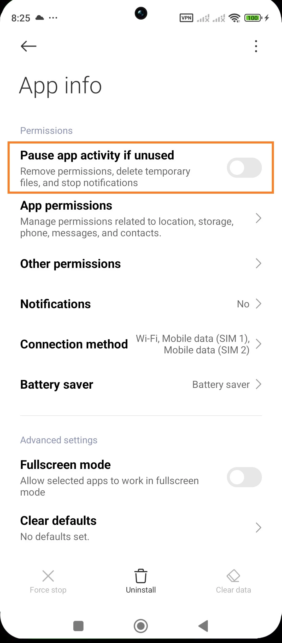 - Open the Settings app on your child's device > open the Apps section > Manage Apps > find the Parental Control Kroha app > turn off the switch next to "Pause the app when not in use".
