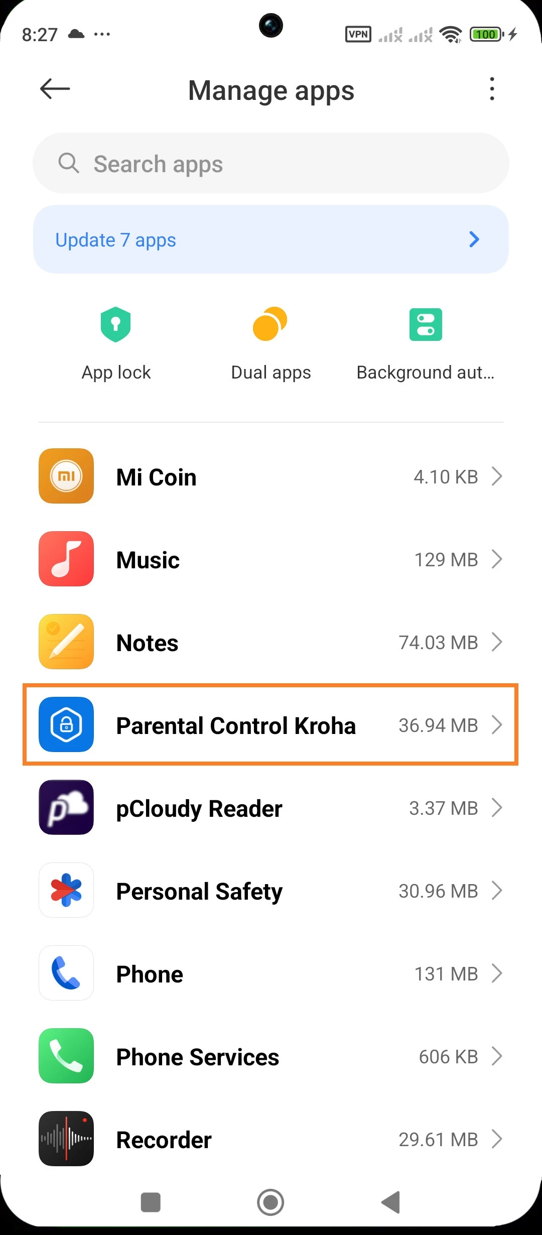 - Autostart settings: open the Settings app on your child's device > Open Apps section> Manage Apps > Background autostart > Find the Parental Control Kroha app > Turn on the switch.