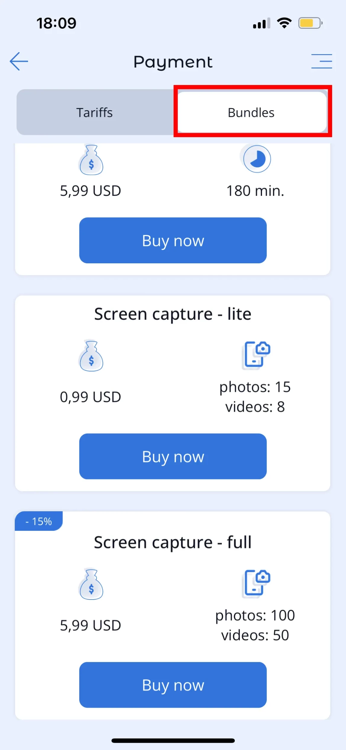 You can expand your account with additional devices, purchase additional minute packages for the "Listen to sounds around the child" feature, or purchase additional packages for the "Screen captures" feature. You can pay for additional services in the Parental Control Kroha app in the "Payment" section ("Bundles" tab).
