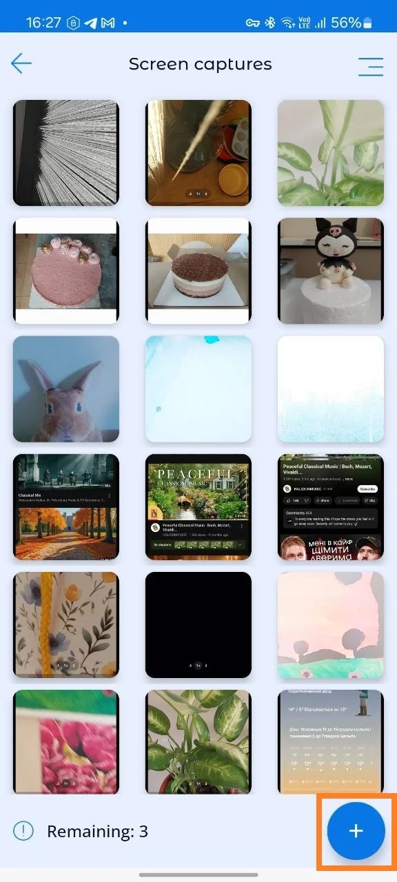 Once the photo is taken, it will appear in the list of screenshots. To take another photo from the kids screen or camera, tap the "+" in the lower right corner.