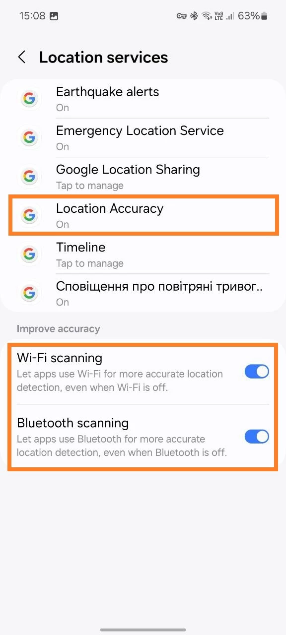 To obtain geodata and to improve the accuracy of location retrieval, please check the following settings: