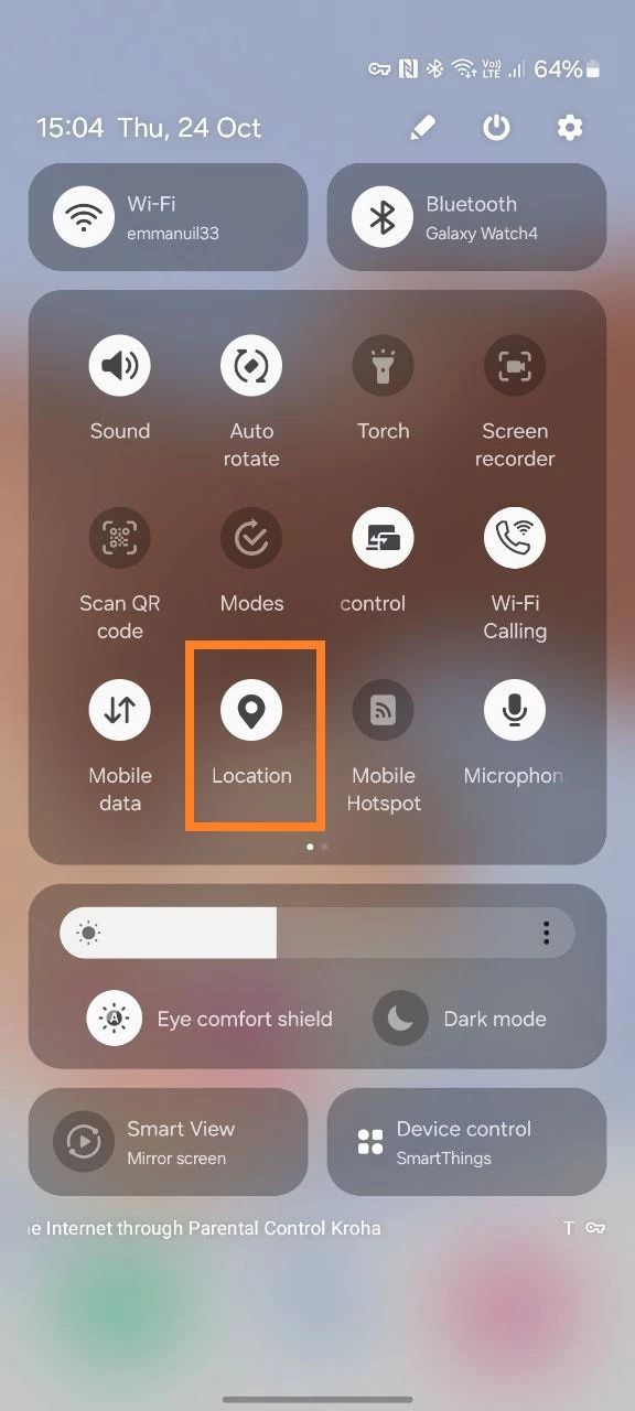 To receive geolocation data, the “Access to Geodata” should be enabled on your child's phone. To do this, enable the “Access to Geodata” option on the child's device in the “notification shade”.