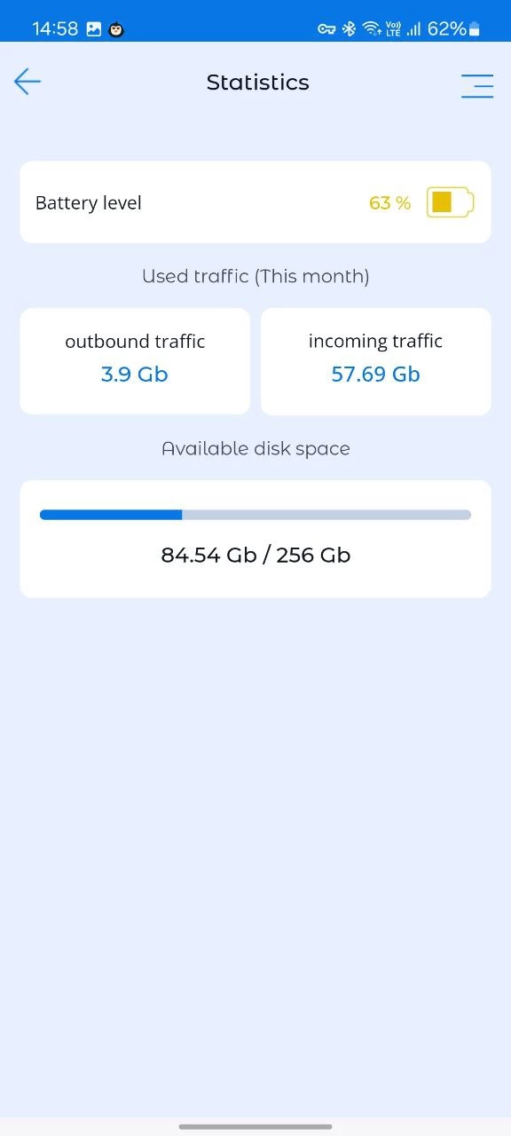 View the battery level, internet traffic consumed, available memory on your child's smartphone.