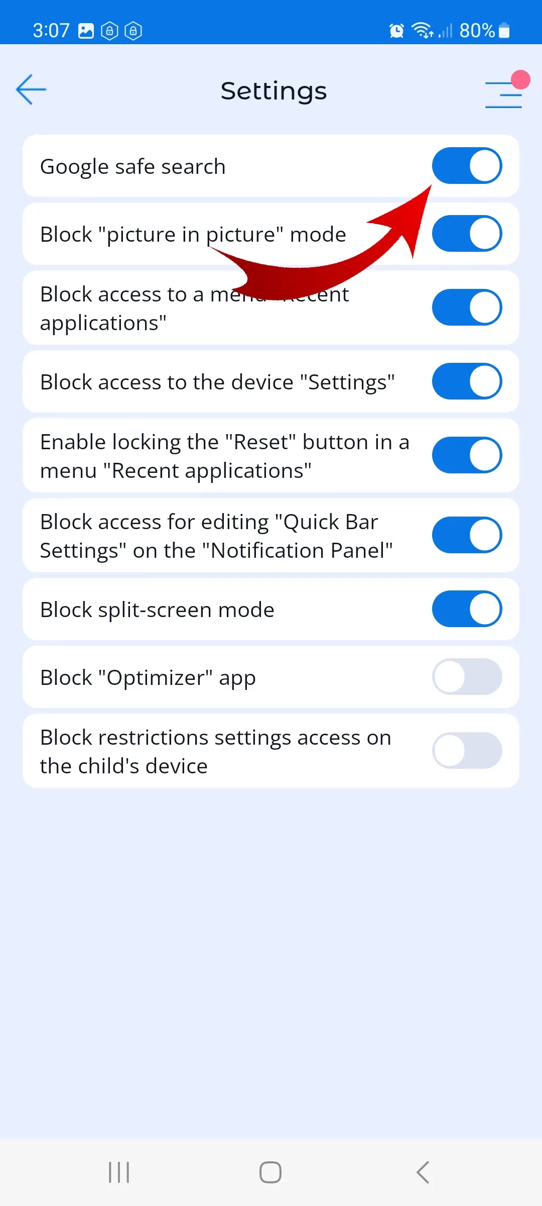- Secure search in the GOOGLE search engine. This feature allows you to filter out unwanted content at the search stage in Google Search or in the Google Chrome browser;