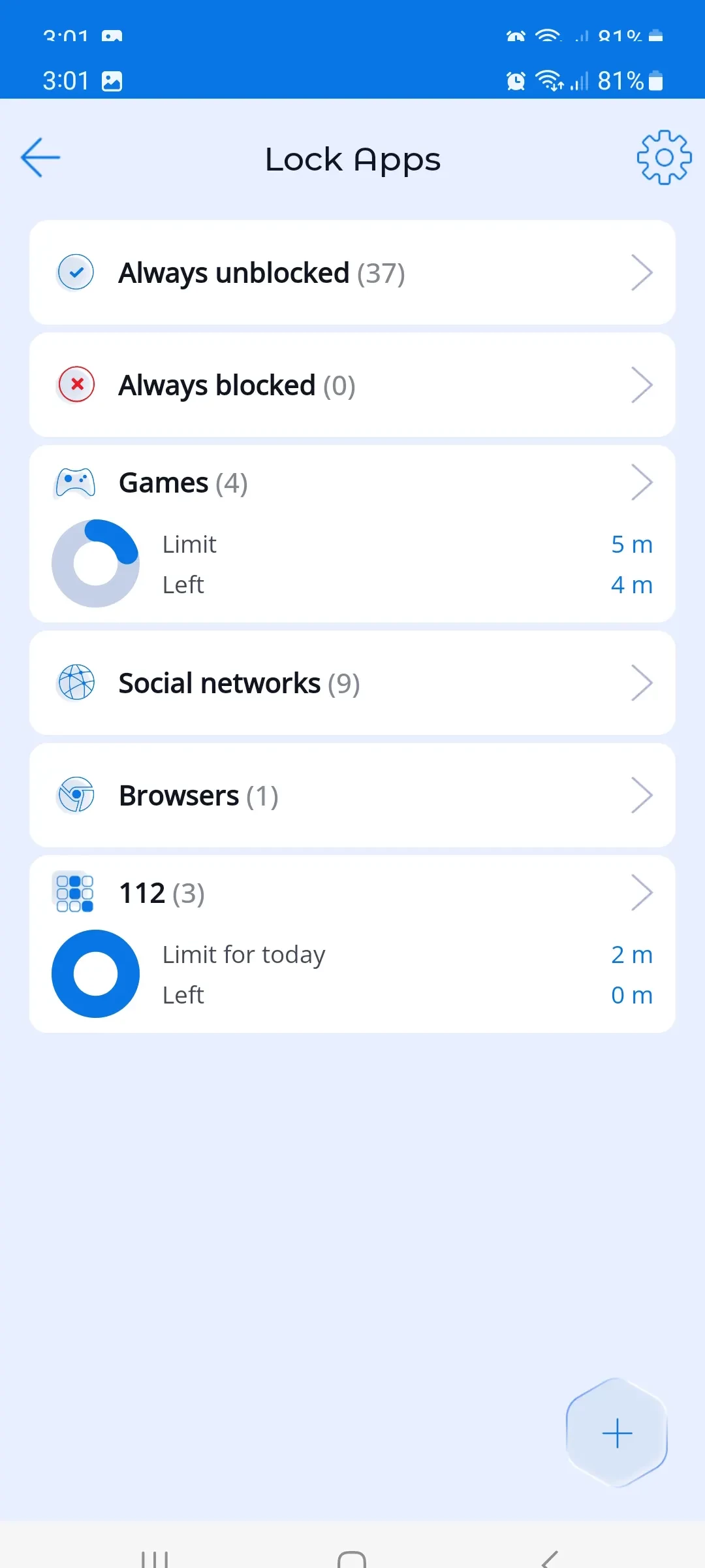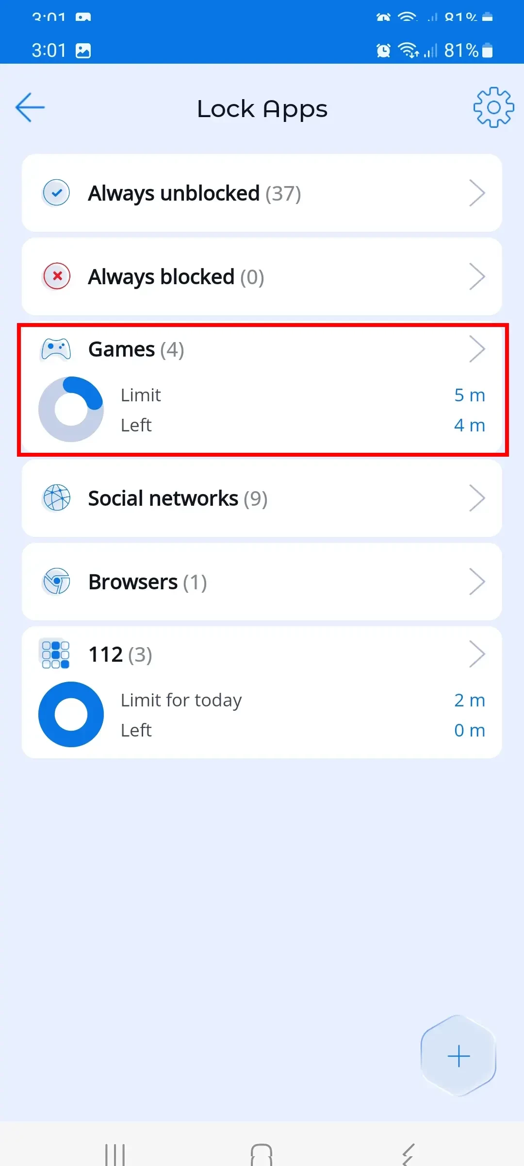 The parents can move apps from category to category and set limits for selected categories.