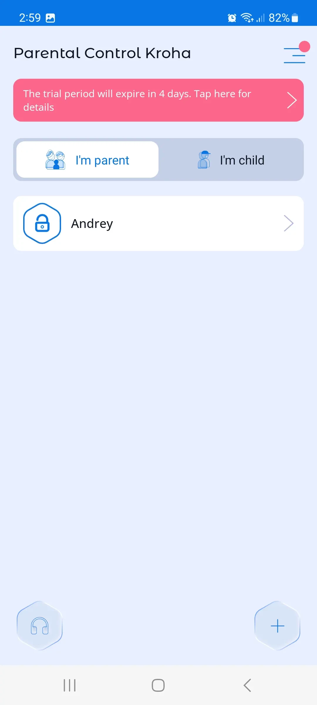 2. Parent/Child mode switch. (A parent can temporarily switch the device to the Child mode, for example, if the child does not yet have his/her own device but is using the parent's phone or tablet).
