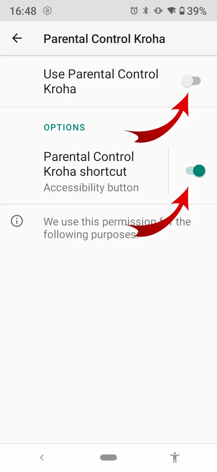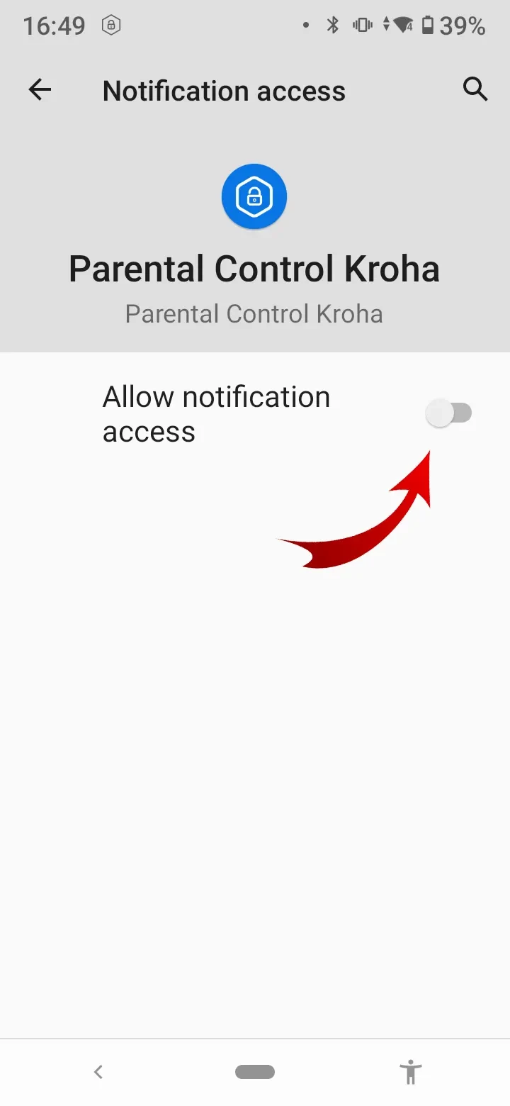 - “App Usage”, enable access to app usage data, for the Kroha Parental Control app to work properly, read the step-by-step guide for details and tap “Next”;