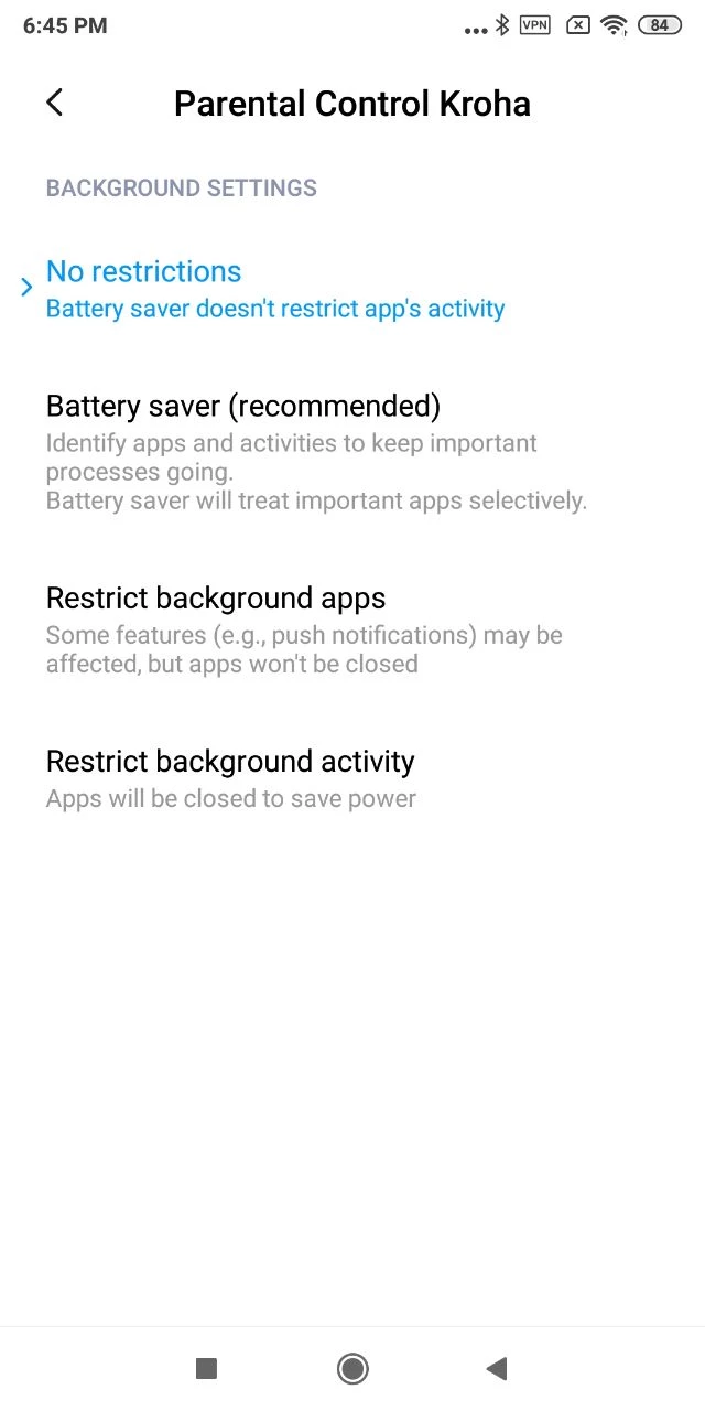 - “Autorun” and “Background Activity Control”: activate these features to make the Kroha Parental Control app start automatically when you turn on your smartphone and make the app always run in the background and control your child's device.