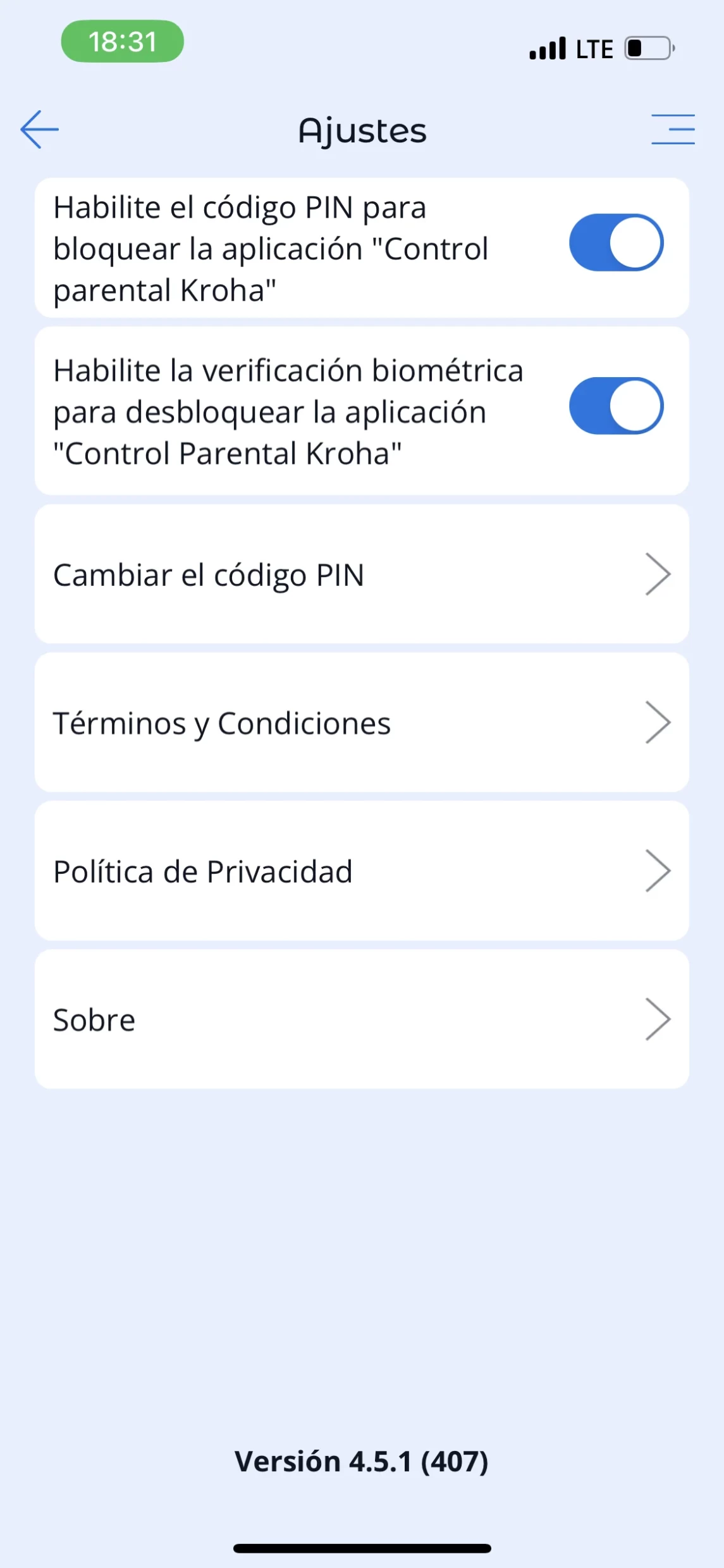 - Activar/desactivar la verificación biométrica en el smartphone del padre;