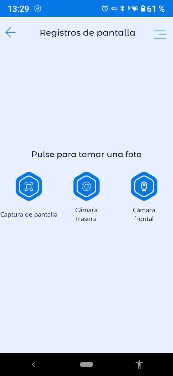 En la sección de "Capturas de pantalla", los padres tienen la opción de tomar una captura de pantalla del dispositivo del niño, una foto desde la cámara trasera o frontal.