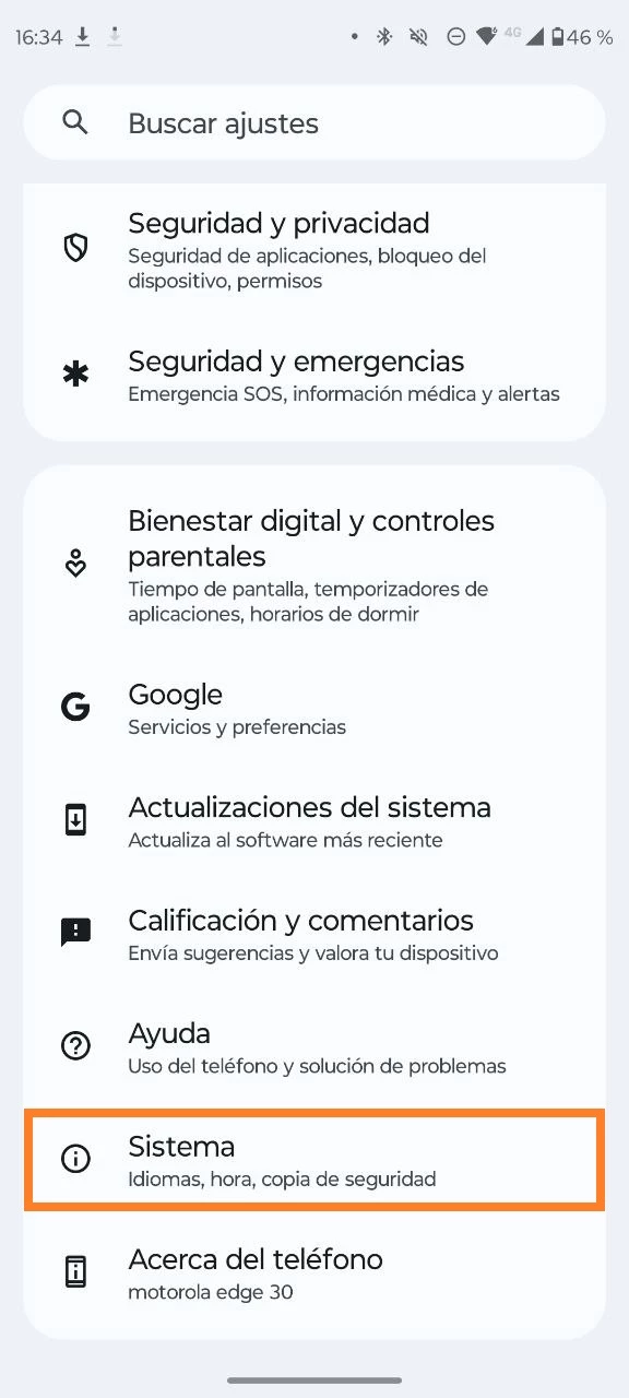 - Ve a la sección “Sistema”;