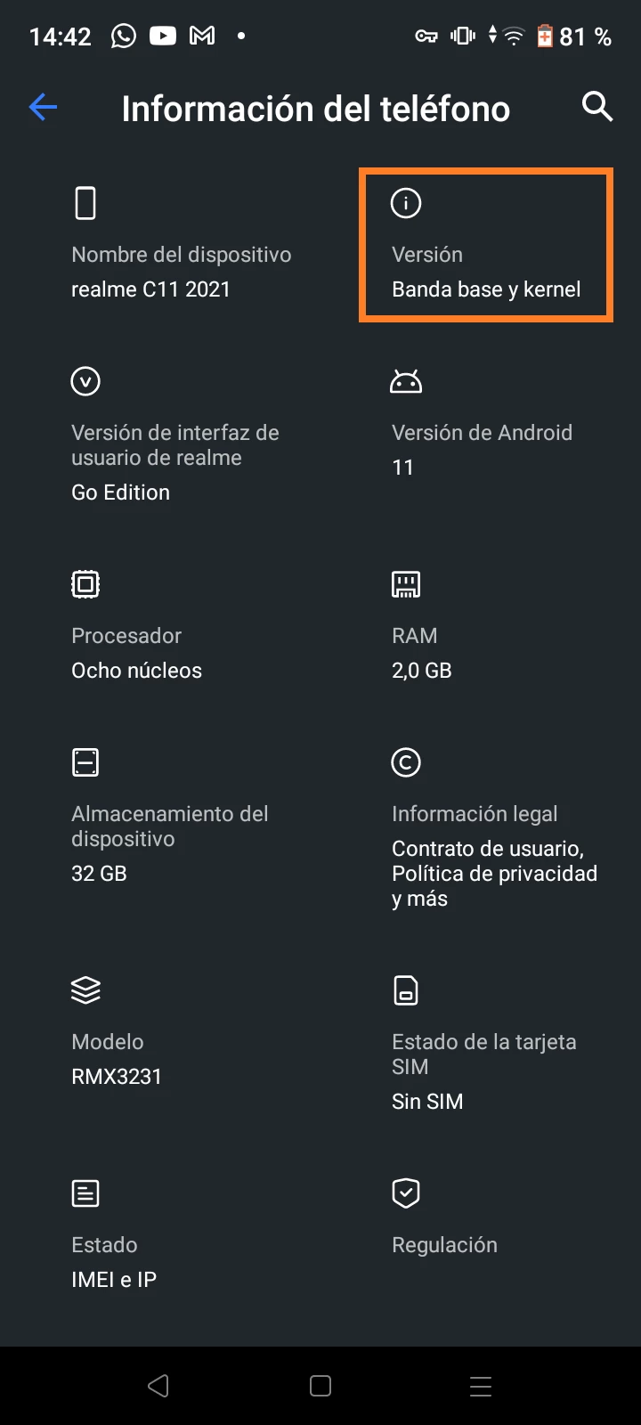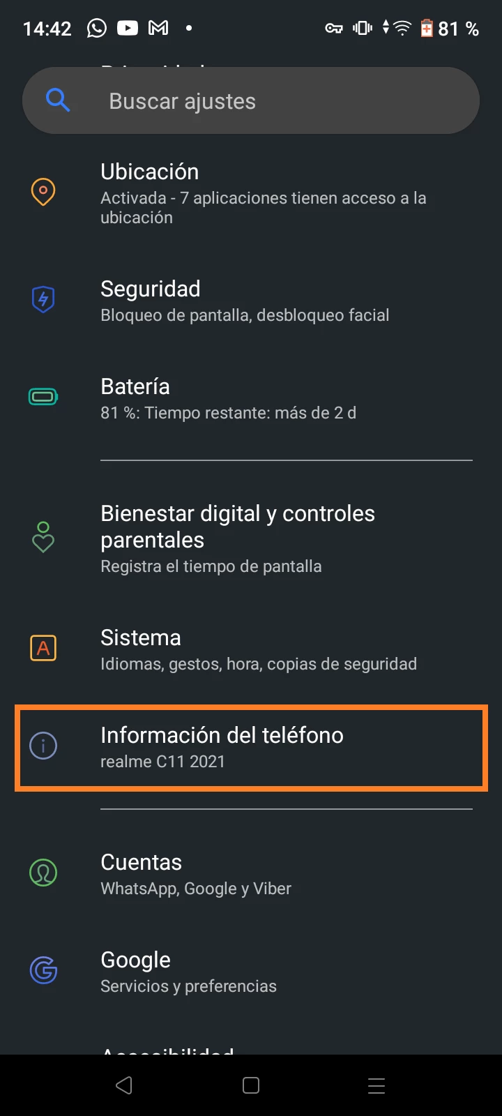 - Ve a la sección “Acerca del teléfono”;