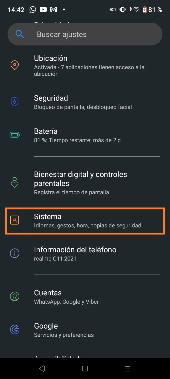 - Ve a la sección “Sistema”;