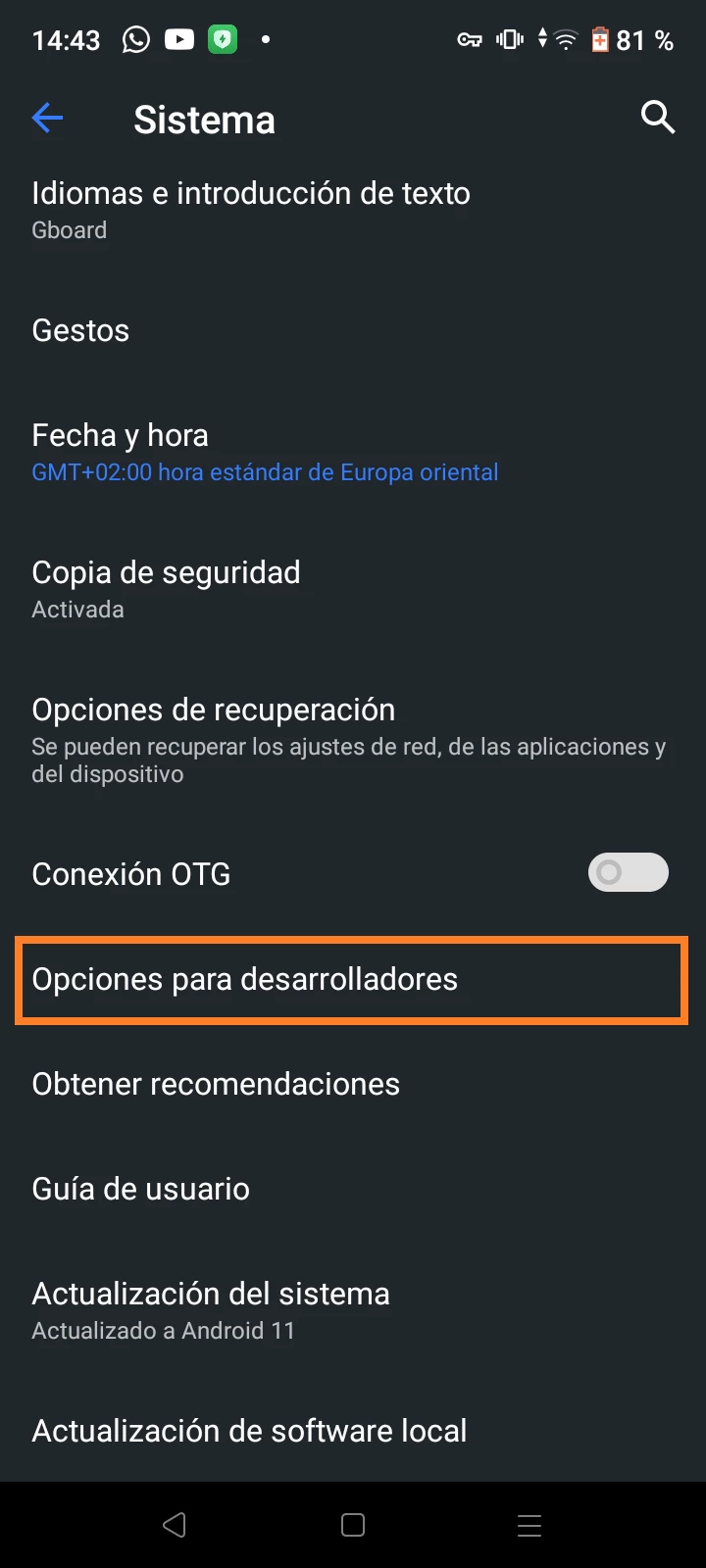 A continuación, para acceder a las opciones de desarrollador: