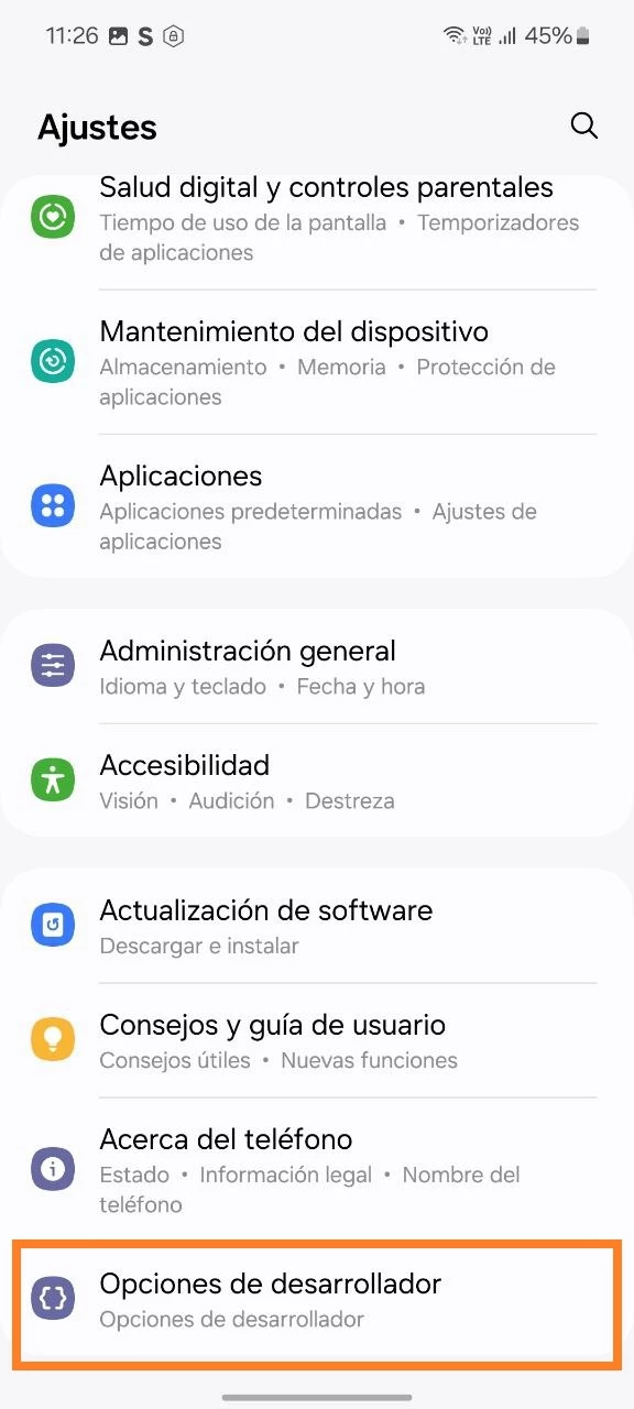 - La sección "Opciones de desarrollador" aparecerá en la parte inferior, haga clic en ella.