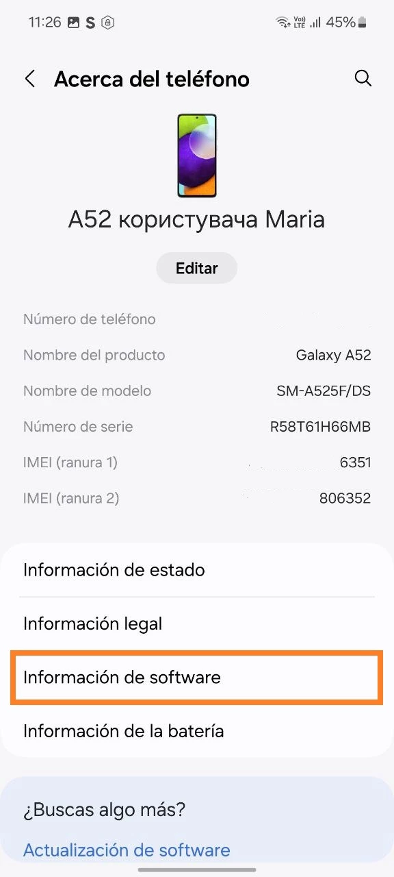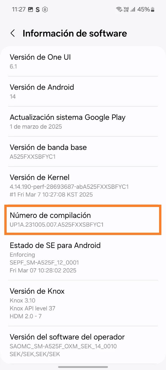 - Buscar el elemento "Número de compilación" y hacer clic en él 5-8 veces;