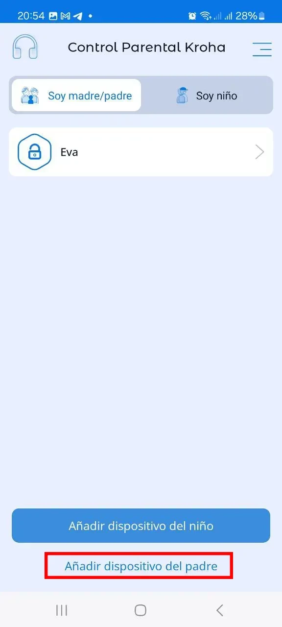 1. Abra la aplicación controle parental Kroha en el primer dispositivo del padre;