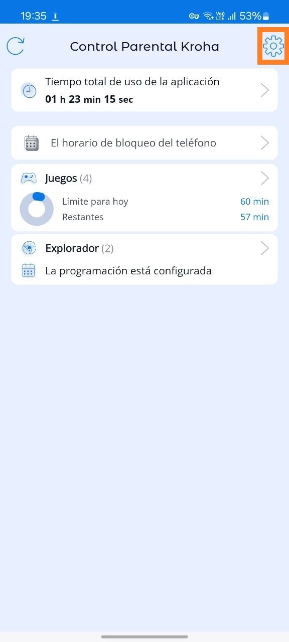 Primero, abre la Aplicación Kroha de control parental en el dispositivo de tu hijo > Toca el ícono de engranaje > Toca "Editar restricciones parentales" > Ingresa el PIN > Si aparece una guía de configuración, sigue las instrucciones.