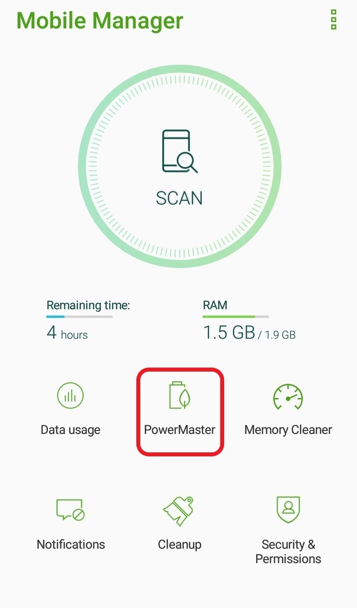 - Configuraciones de optimización de batería: Abra la aplicación Mobile Manager > Vaya a PowerMaster > Configuraciones de Ahorro de Batería > apague los interruptores junto a: apagar aplicaciones que drenan la batería, limpieza en espera y desactivar ejecución automática > luego vaya a "Detener aplicaciones no deseadas", busque la Aplicación de control paterno Kroha, seleccione "No detener".