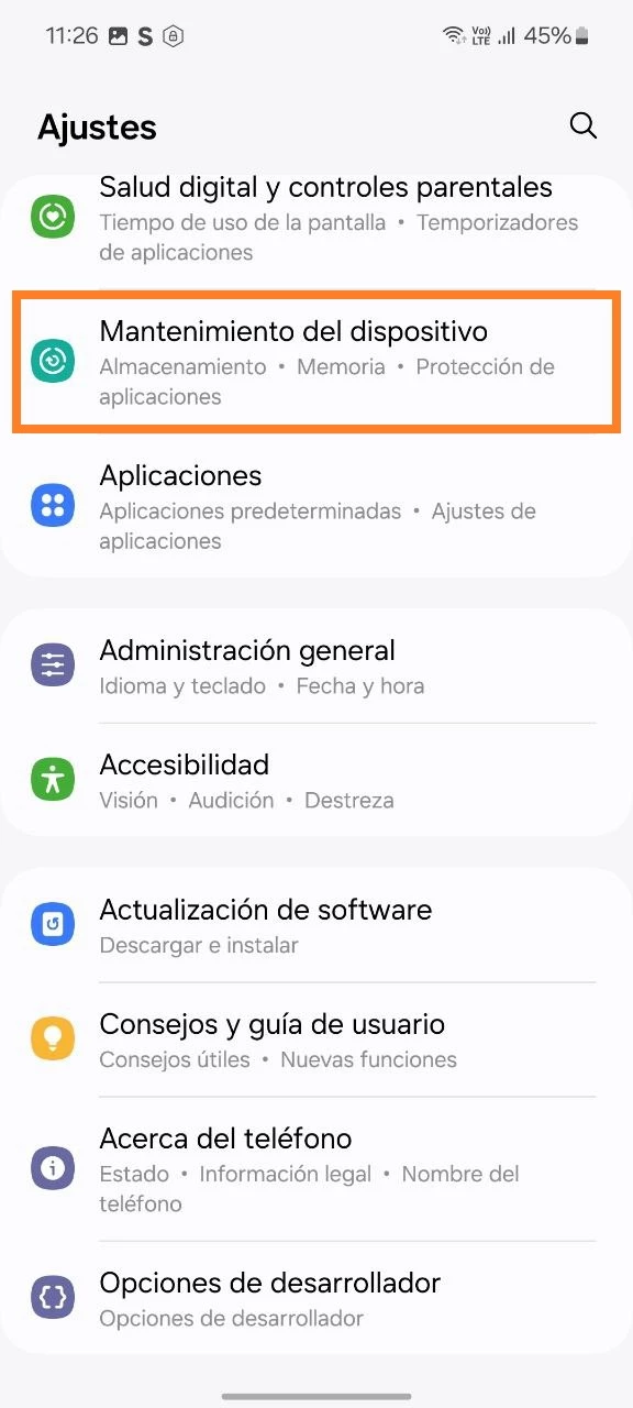 - Regrese al menú principal de la aplicación de Configuración > sección Cuidado del dispositivo > Vaya a Batería > Restricciones en segundo plano > Verifique si la App de control parental Kroha ha sido añadida a las aplicaciones en espera.