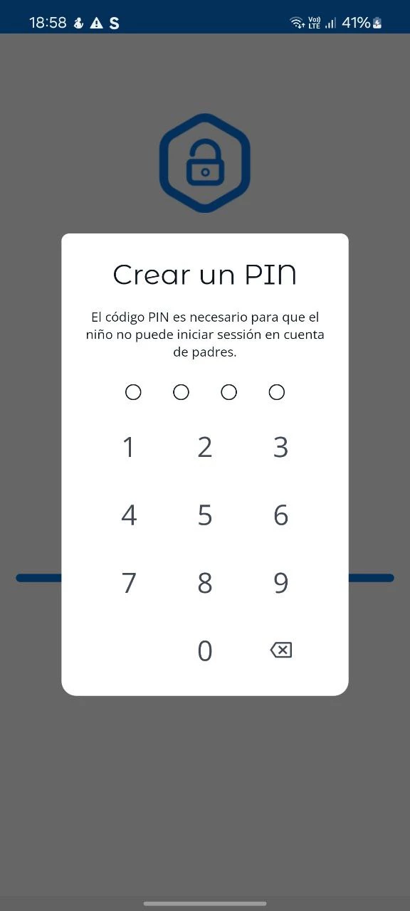A continuación, la App de control parental Kroha Advanced se abrirá en el smartphone/tablet del niño con una pantalla para crear un código PIN. Crea un código PIN.