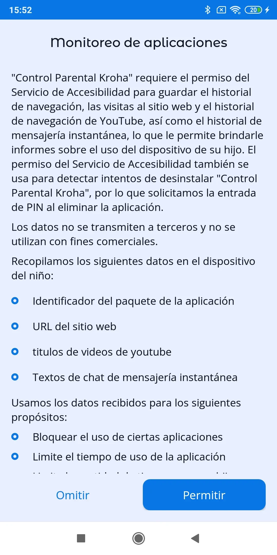 Configurar la aplicación de control parental es lo más sencillo posible para el usuario. La aplicación describe la necesidad de configurar permisos, el usuario solo tiene que seguir las instrucciones ofrecidas por la aplicación. El usuario debe conceder todos los permisos solicitados para que la aplicación funcione correctamente. La configuración completa no toma más de 2-3 minutos.