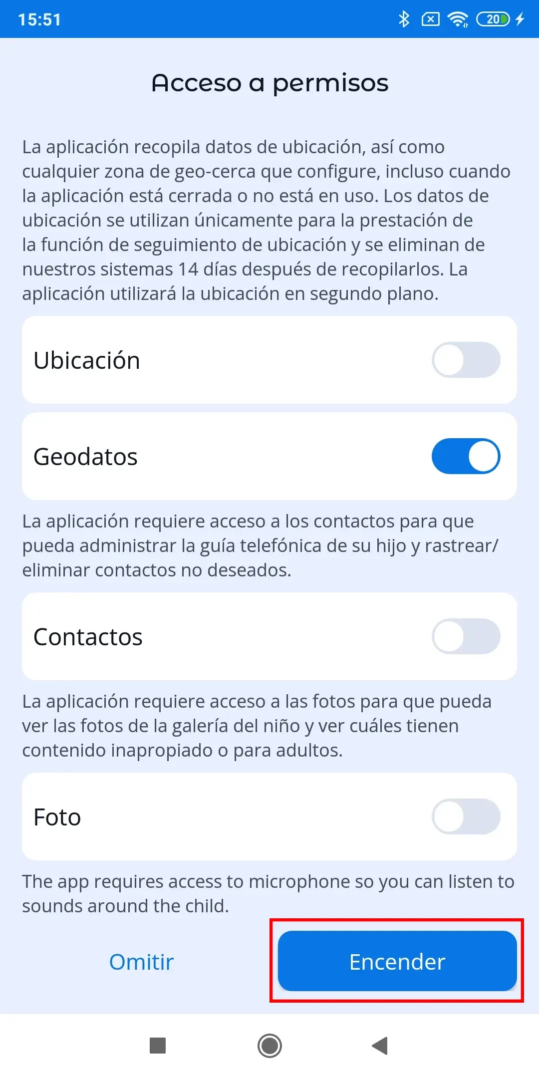 Para que la aplicación funcione correctamente, necesita establecer permisos al conectar el dispositivo de su hijo a su cuenta.