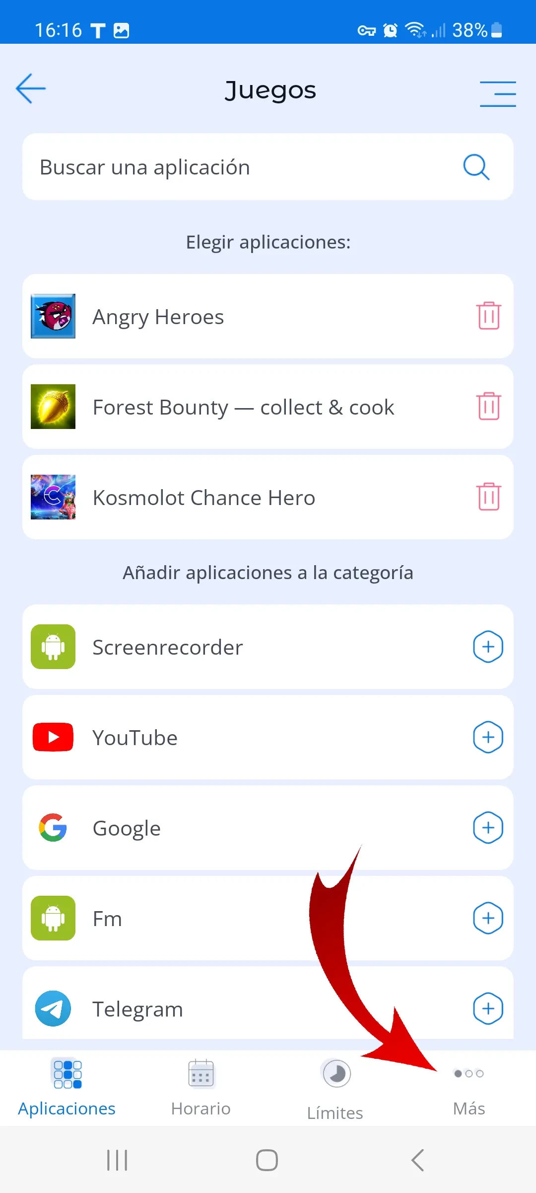 Los padres siempre pueden cambiar el límite diario. La configuración flexible de Control Parental Kroha permite a los padres cambiar las restricciones para juegos y aplicaciones cuando sea necesario. Los padres pueden establecer los límites necesarios en el menú adicional (tres puntos en la esquina inferior derecha de la pantalla).
